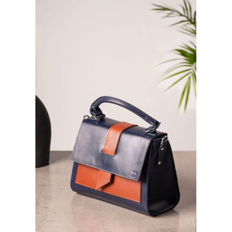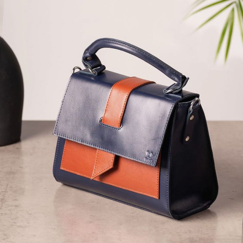 Женская кожаная сумка Ester сине-коричневая