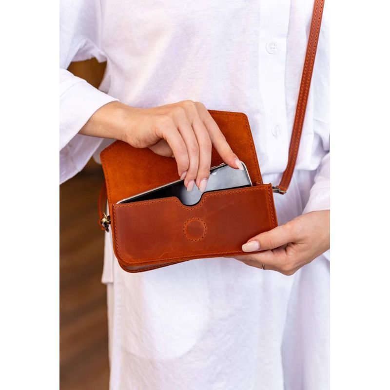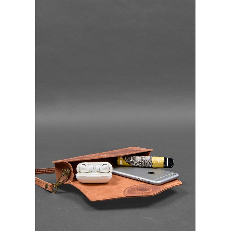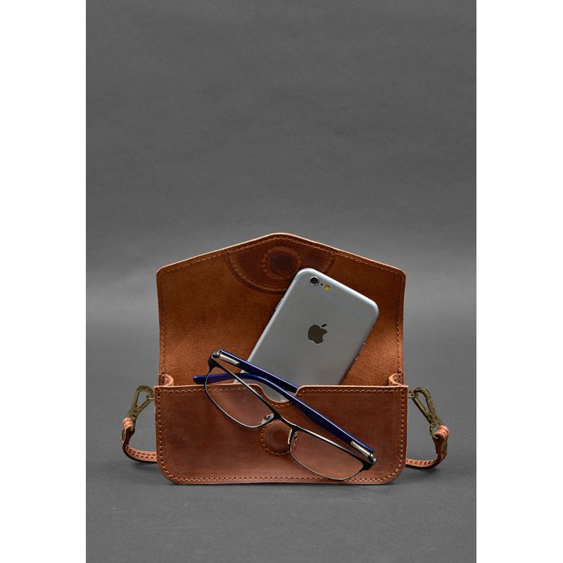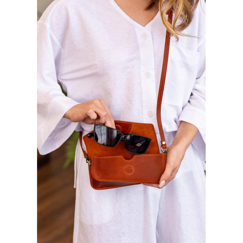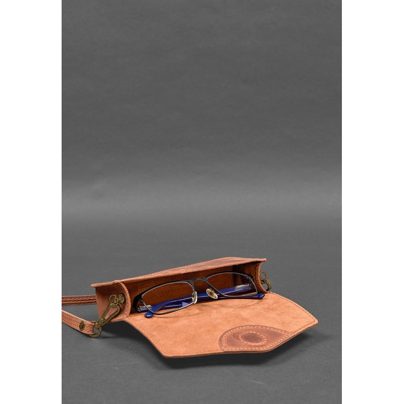 Кожаная сумка-футляр для очков (мини-сумка) светло-коричневая Crazy Horse