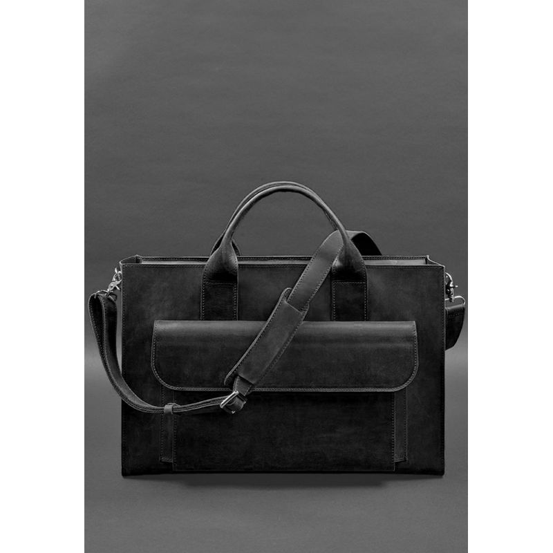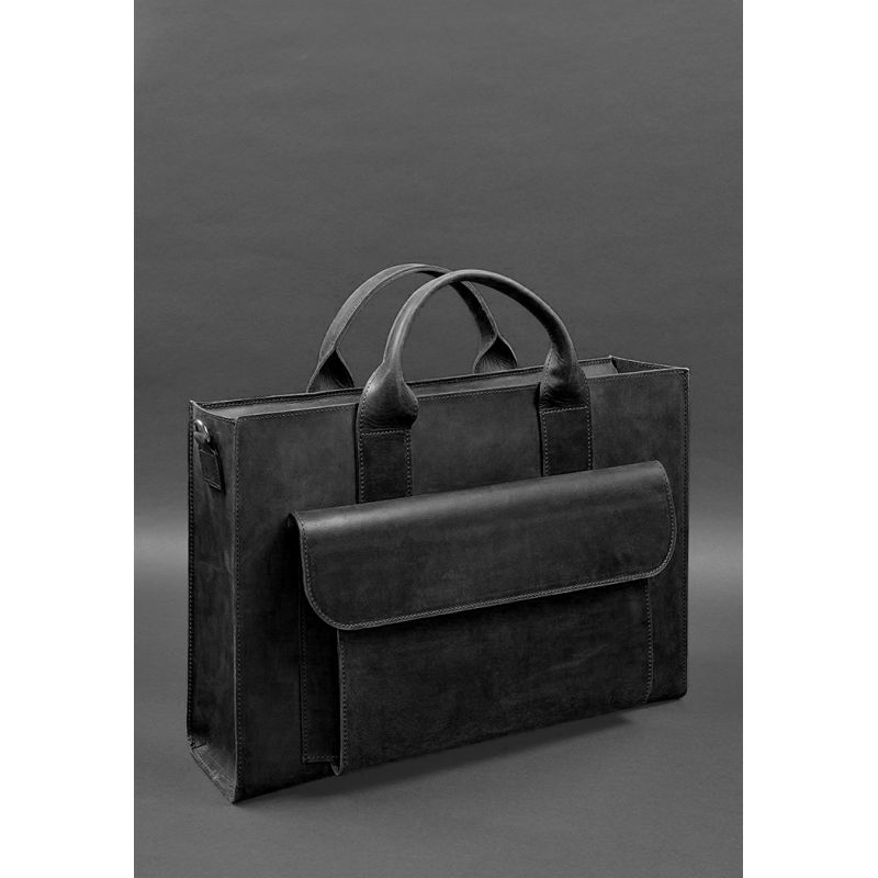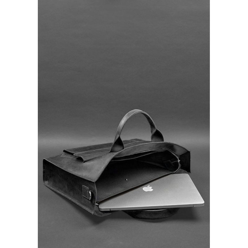 Кожаная сумка для ноутбука и документов Универсальная черная Crazy Horse