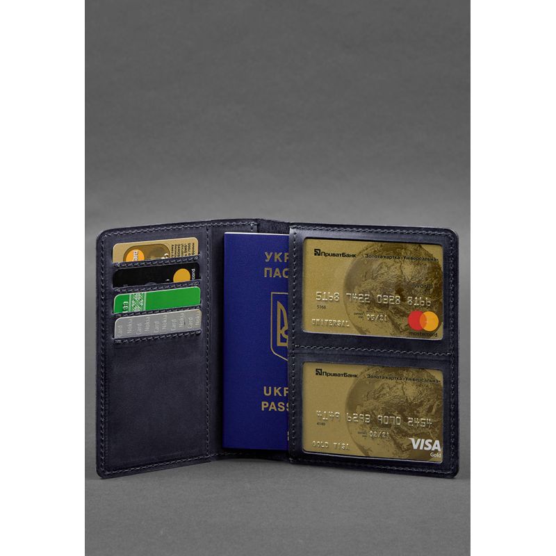 Кожаная обложка-органайзер для документов 6.1 синий Crazy Horse