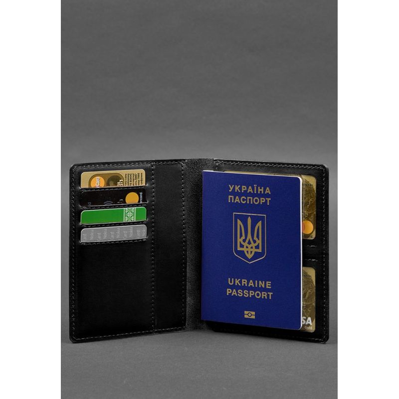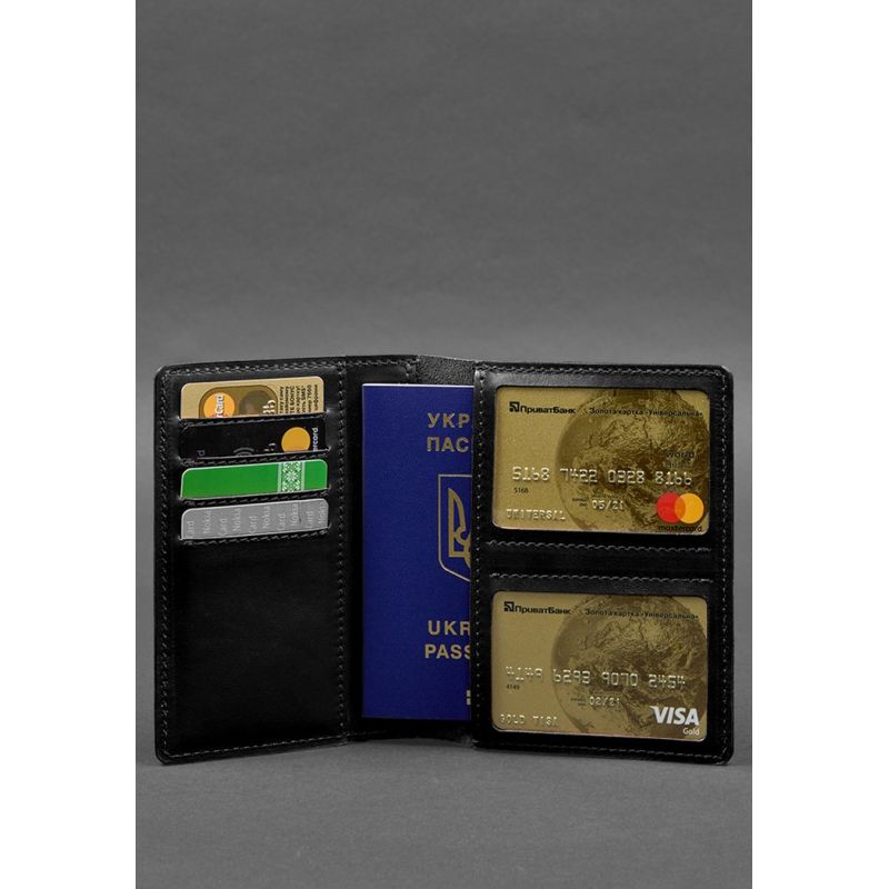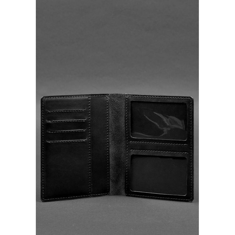 Кожаная обложка-органайзер для документов 6.1 черный краст