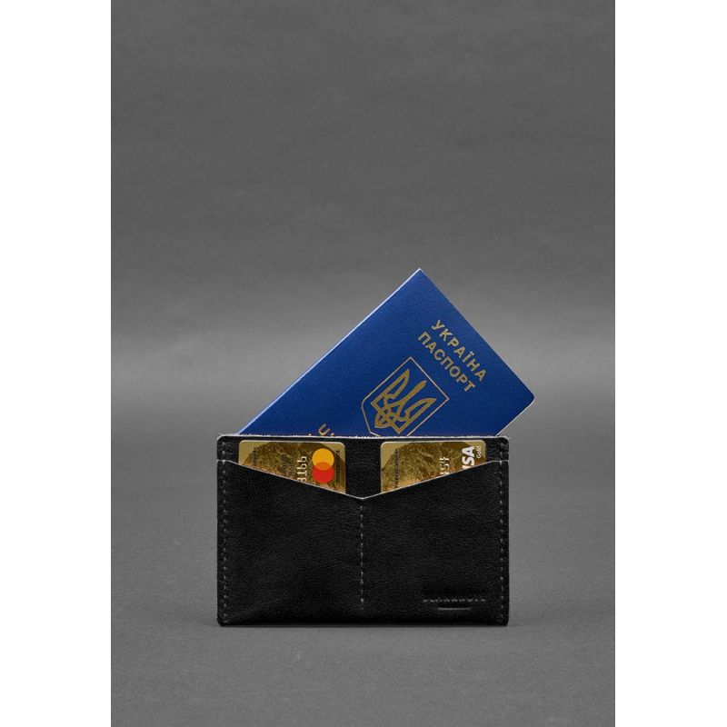 Кожаная обложка-органайзер для документов 6.2 черный краст