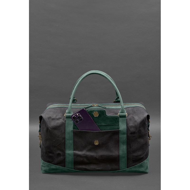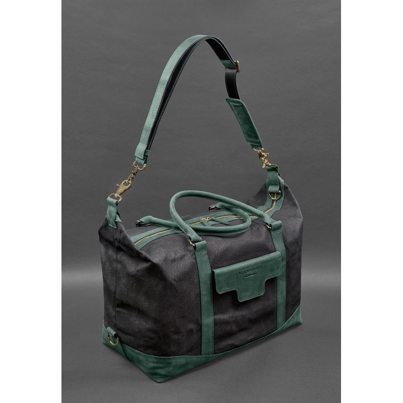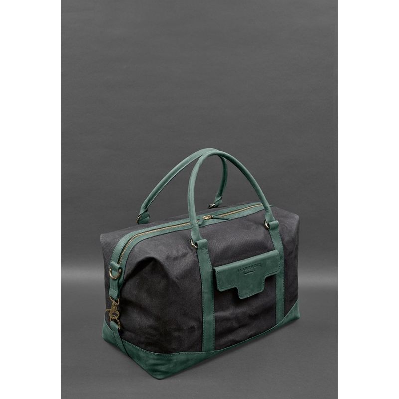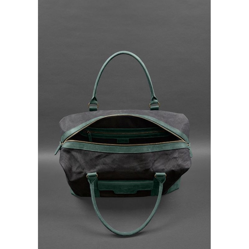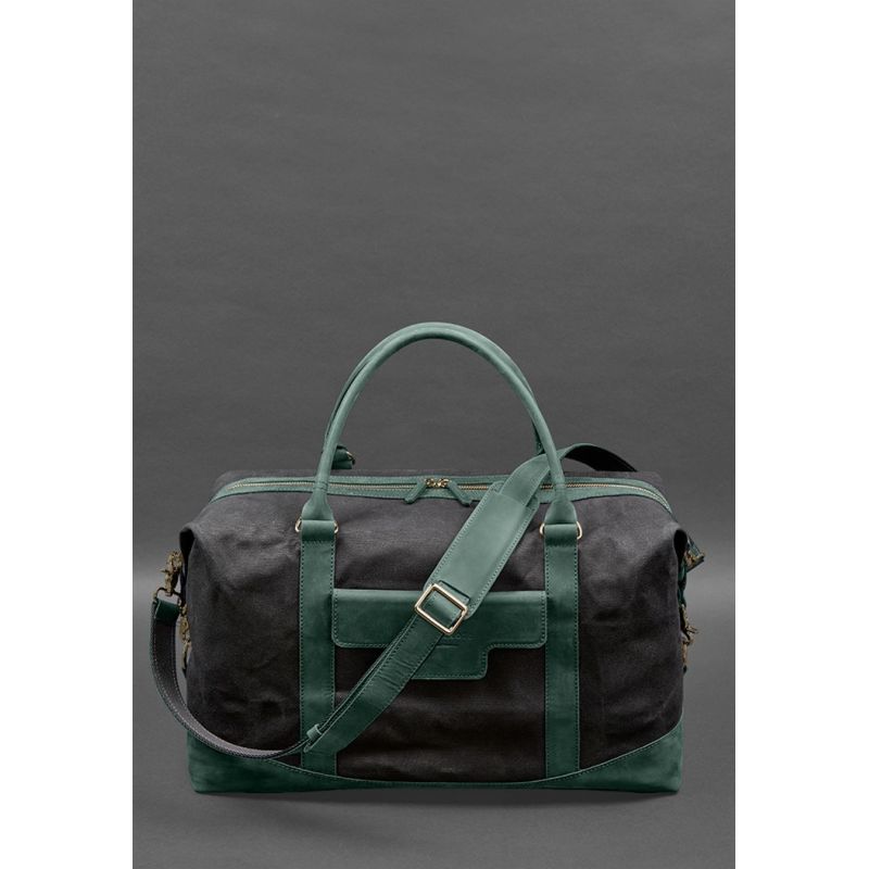 Дорожная сумка из канваса и натуральной зеленой кожи Crazy Horse