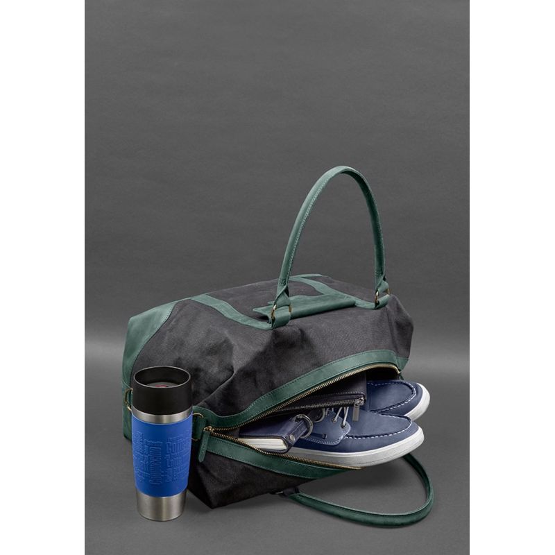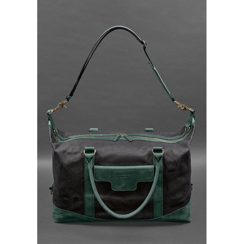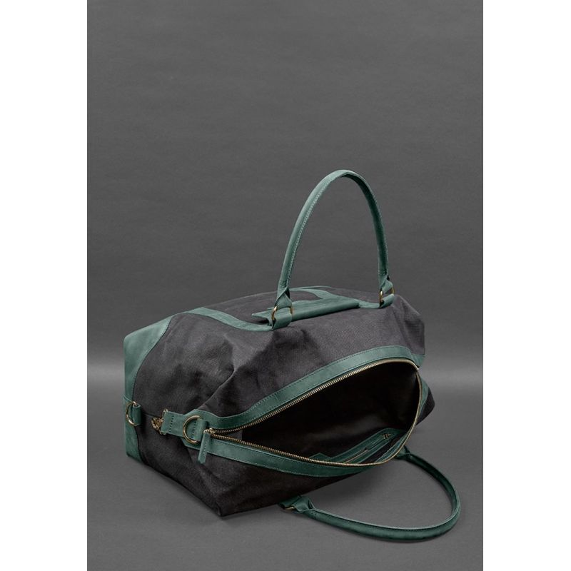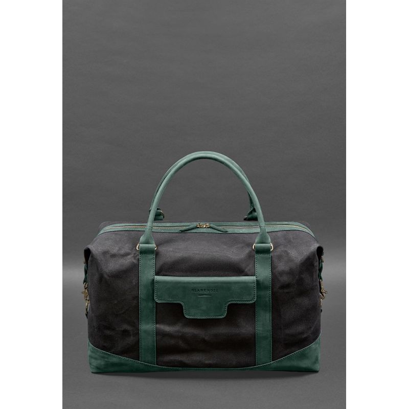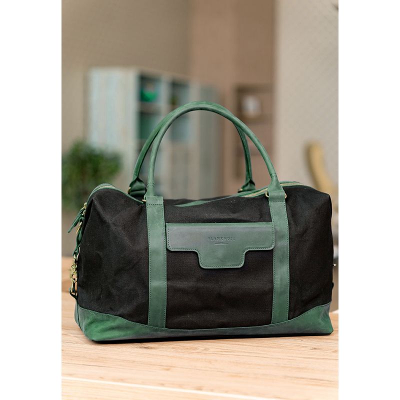 Дорожная сумка из канваса и натуральной зеленой кожи Crazy Horse