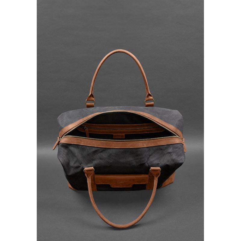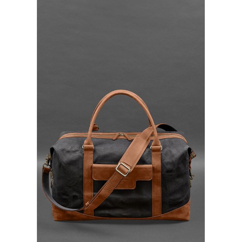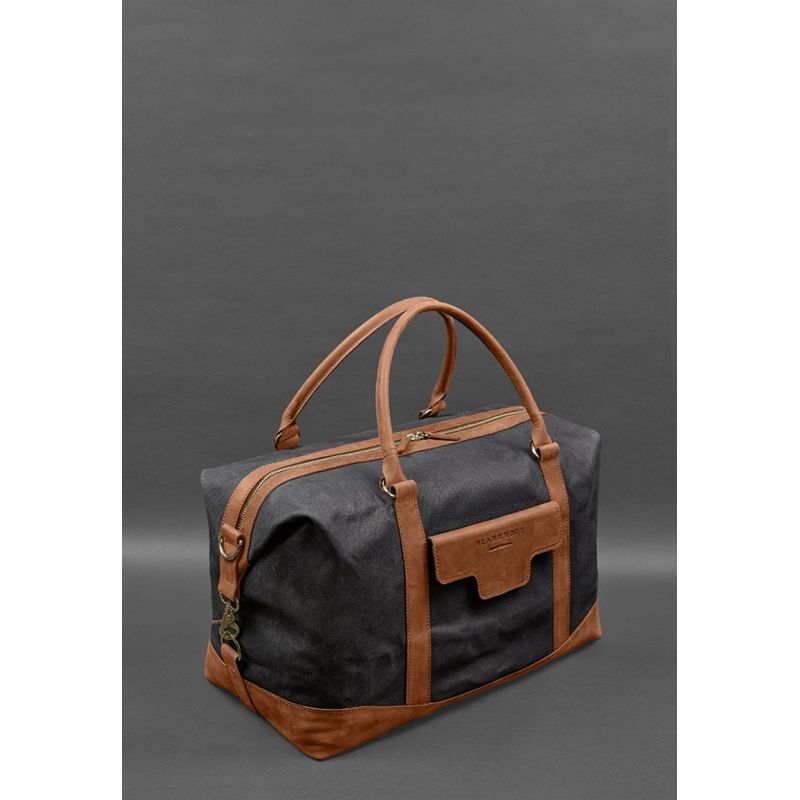 Дорожная сумка из канваса и натуральной светло-коричневой кожи Crazy Horse