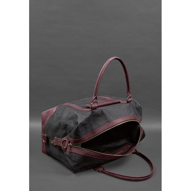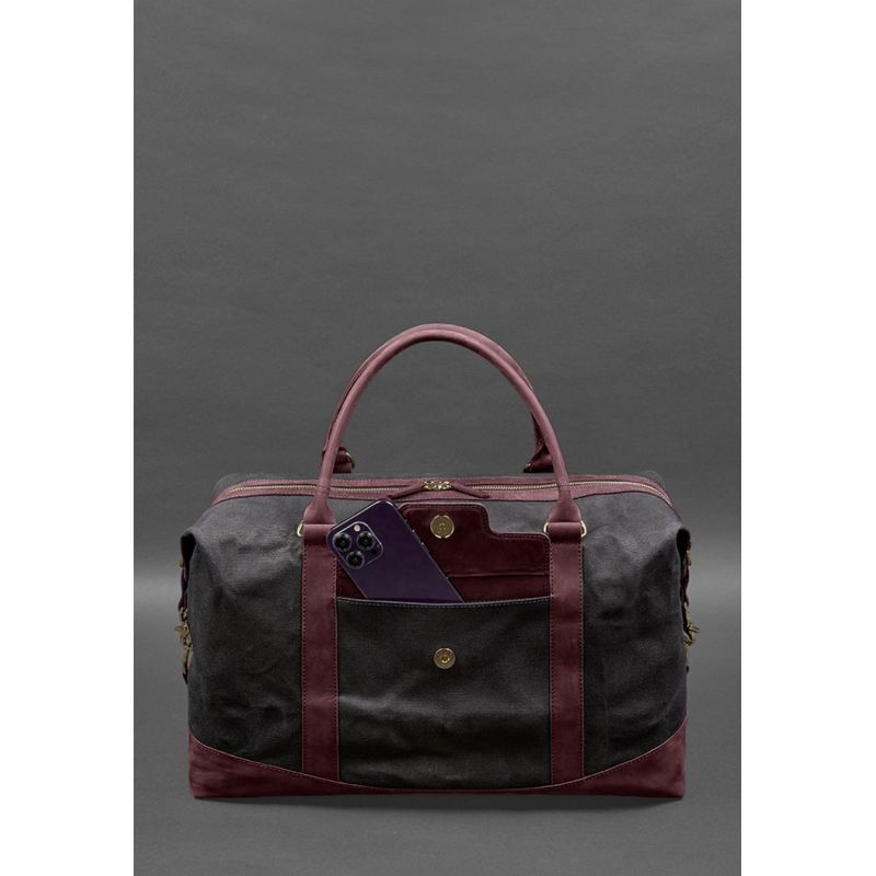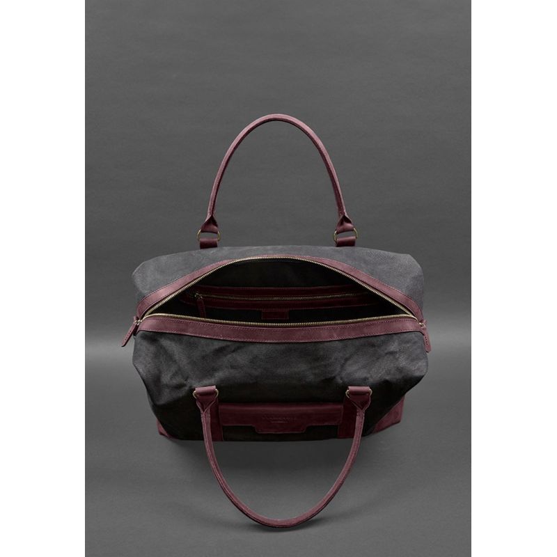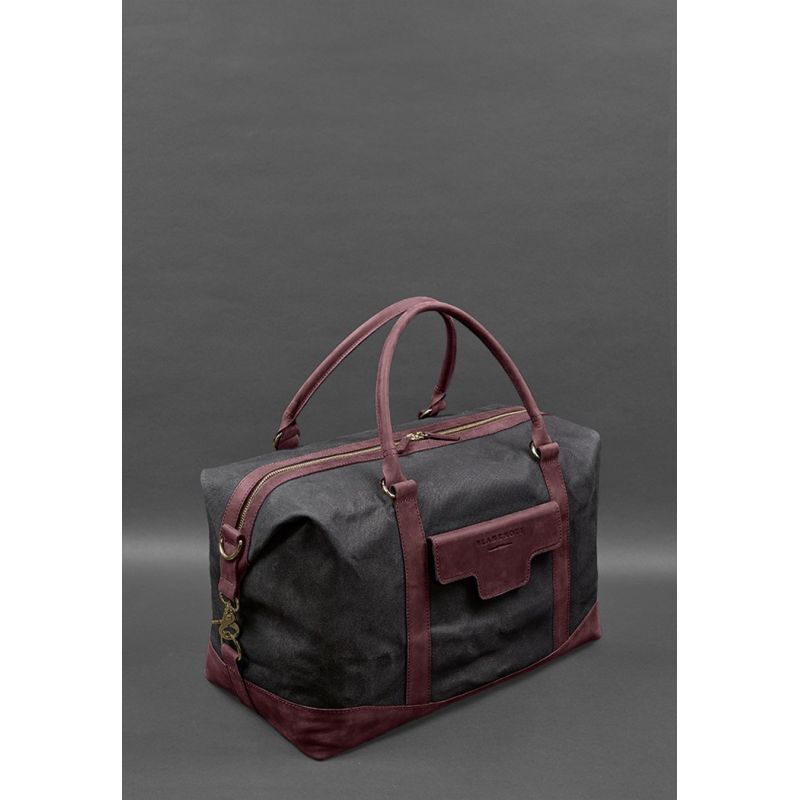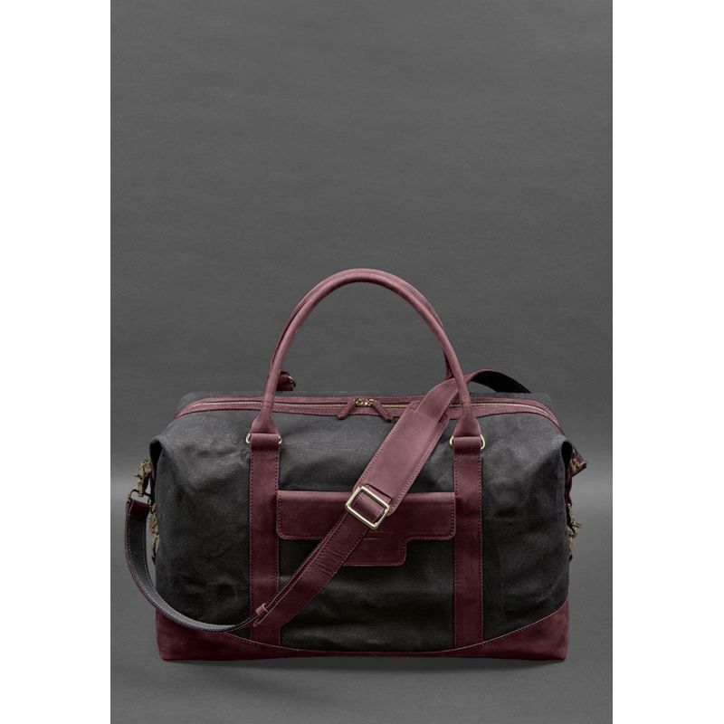 Дорожная сумка из канваса и натуральной бордовой кожи Crazy Horse