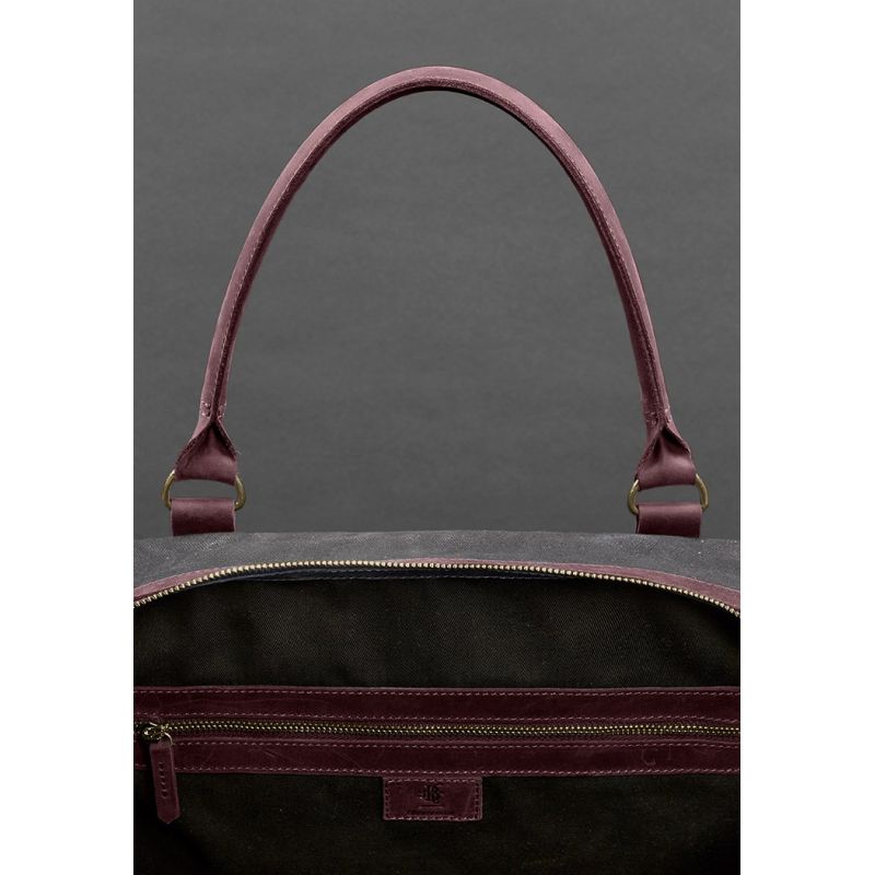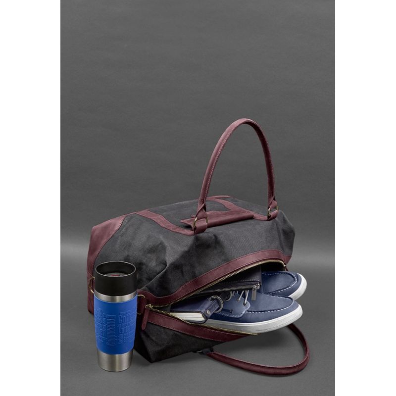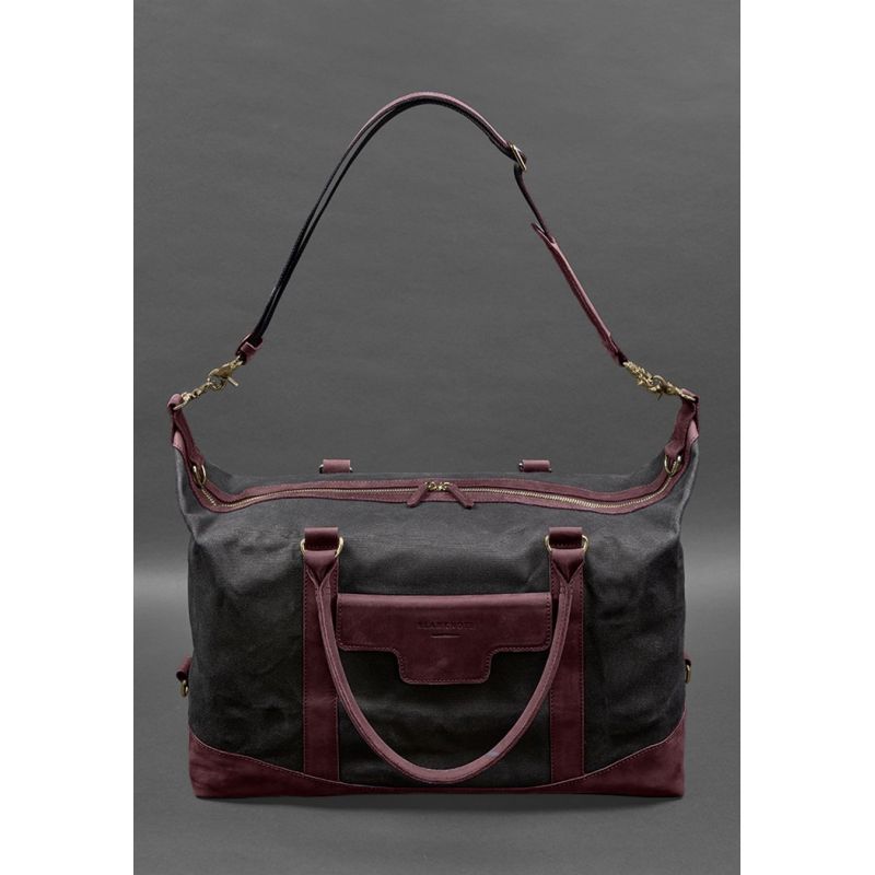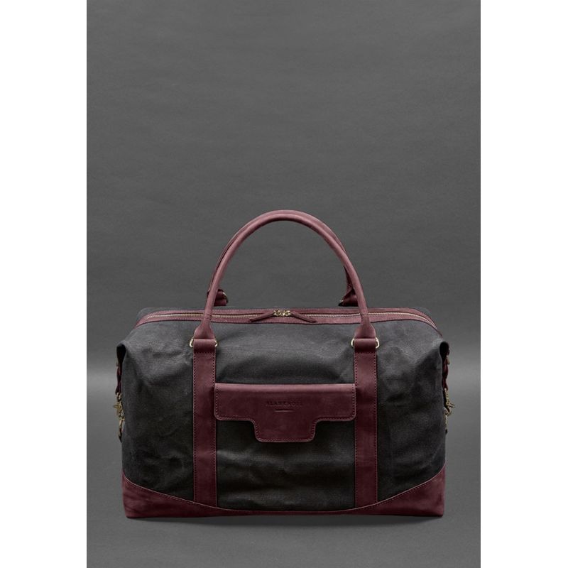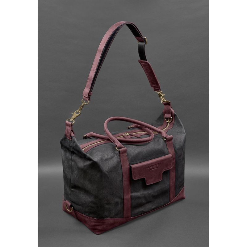 Дорожная сумка из канваса и натуральной бордовой кожи Crazy Horse