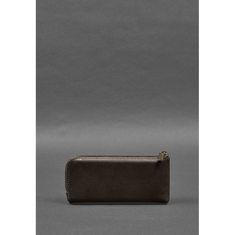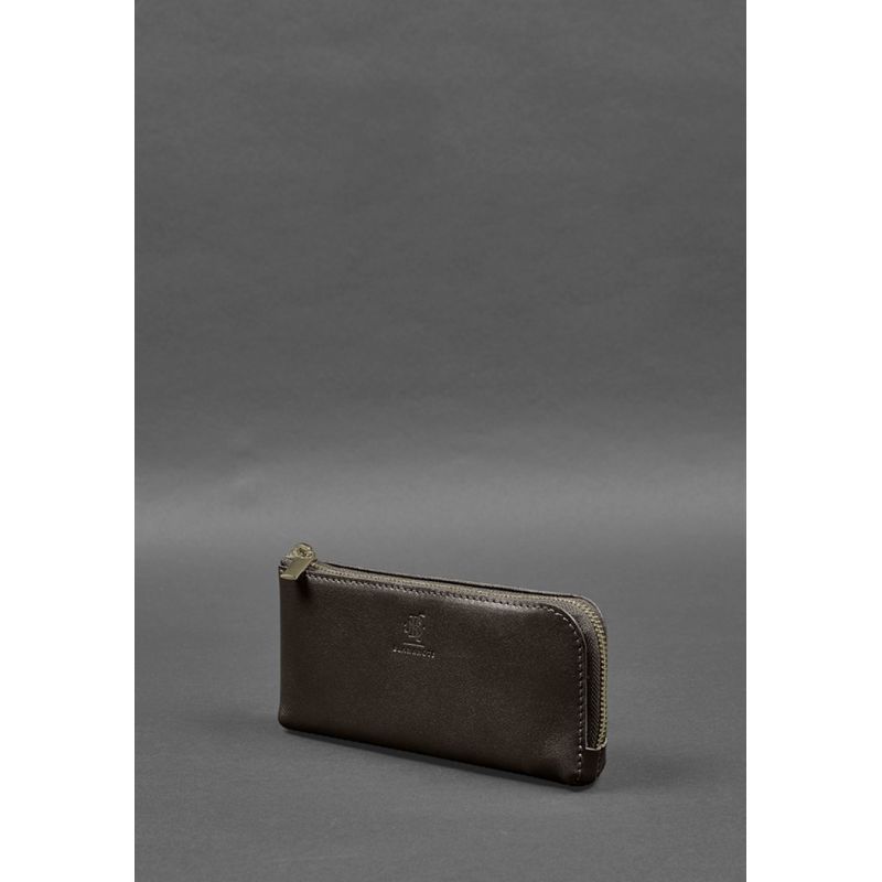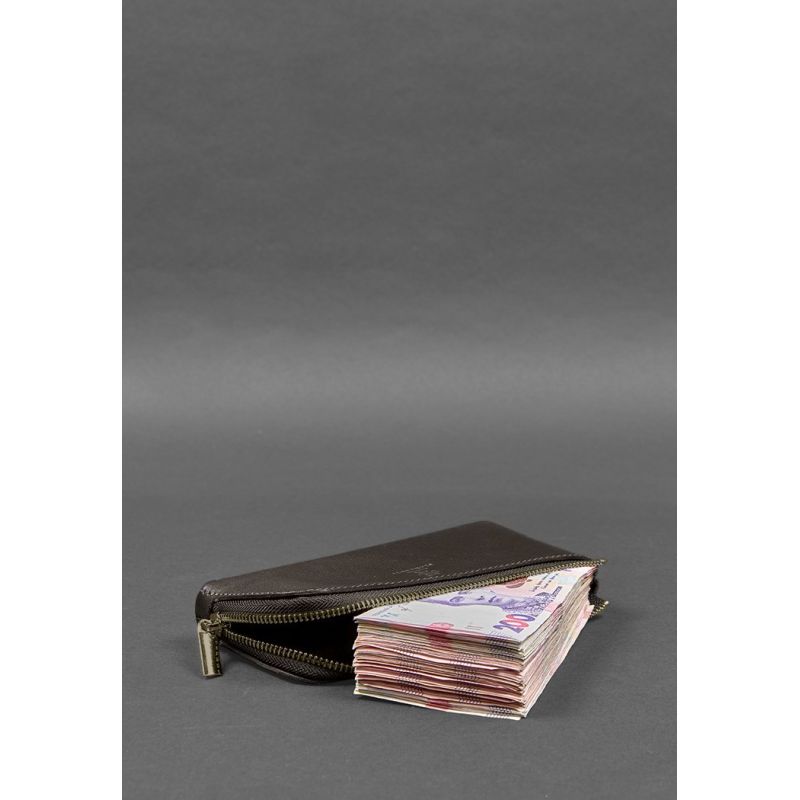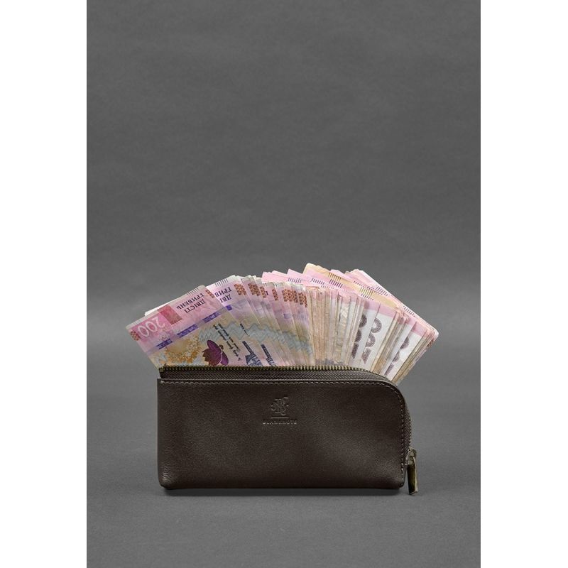 Кожаное портмоне-купюрник на молнии 14.0 темно-коричневое