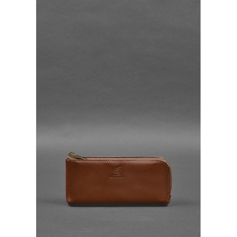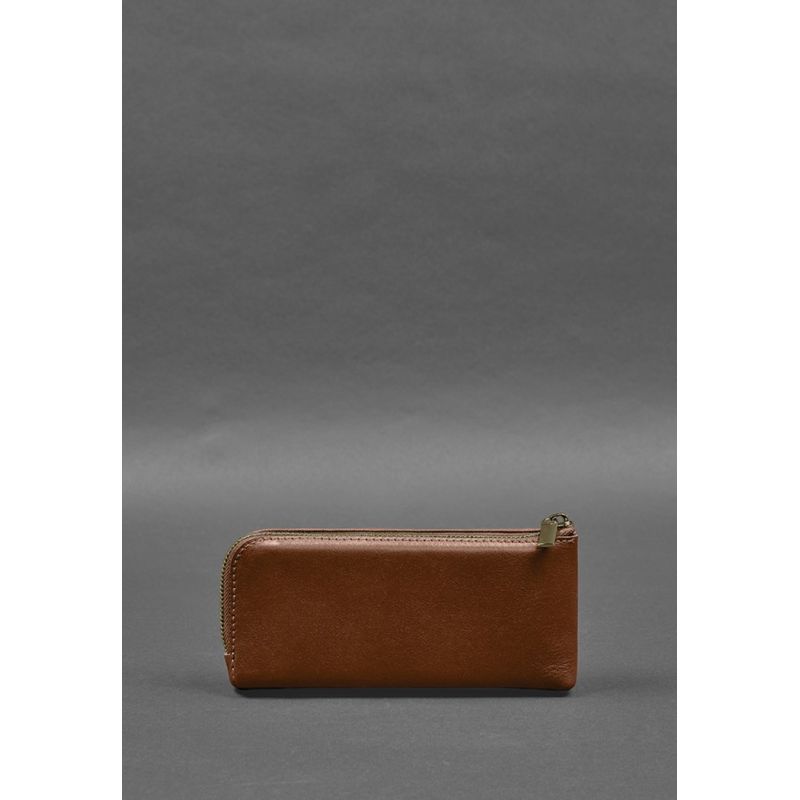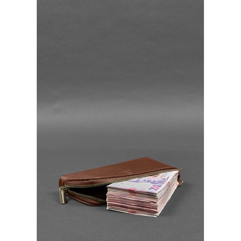 Кожаное портмоне-купюрник на молнии 14.0 светло-коричневое