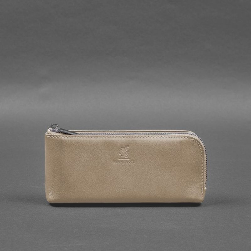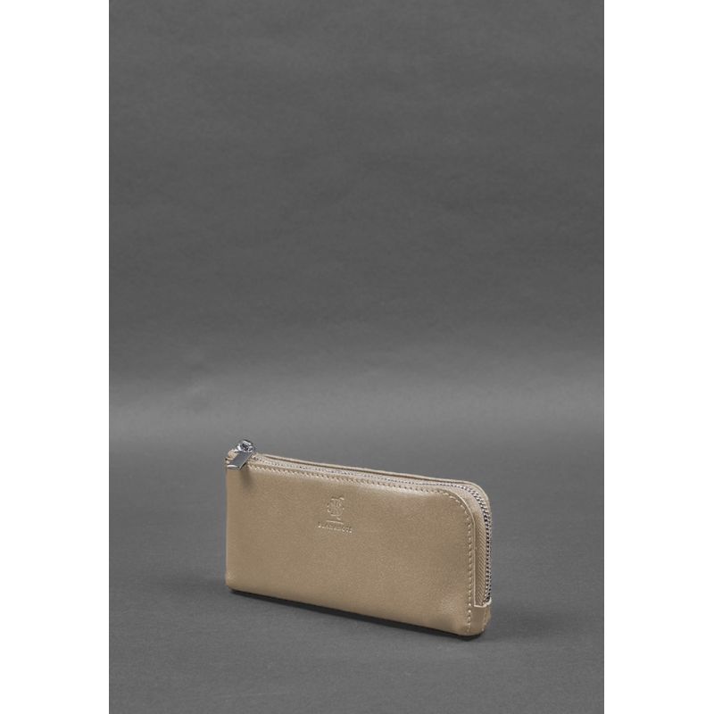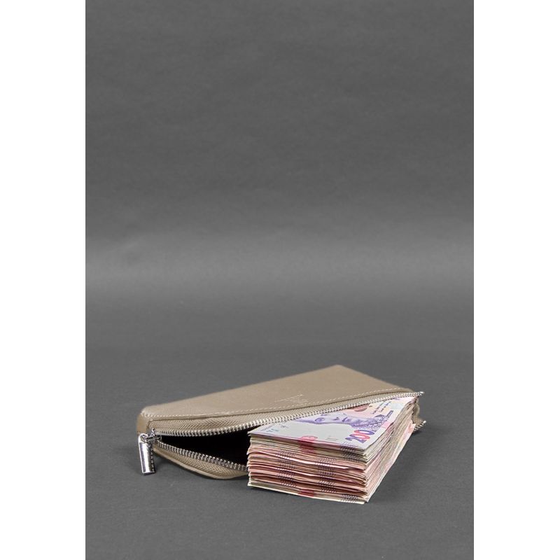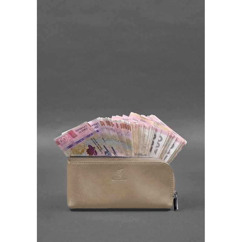 Кожаное портмоне-купюрник на молнии 14.0 светло-бежевое