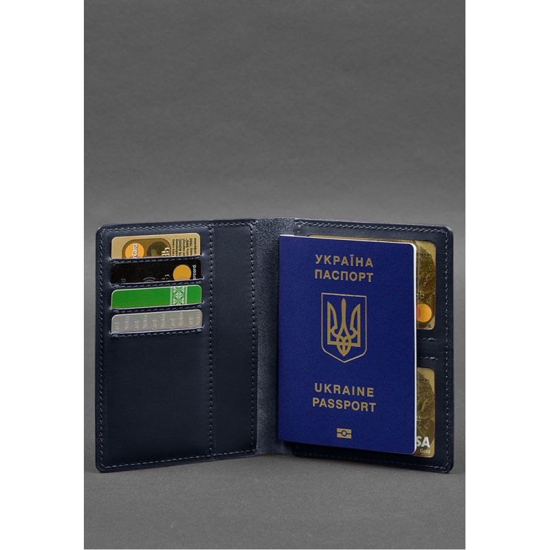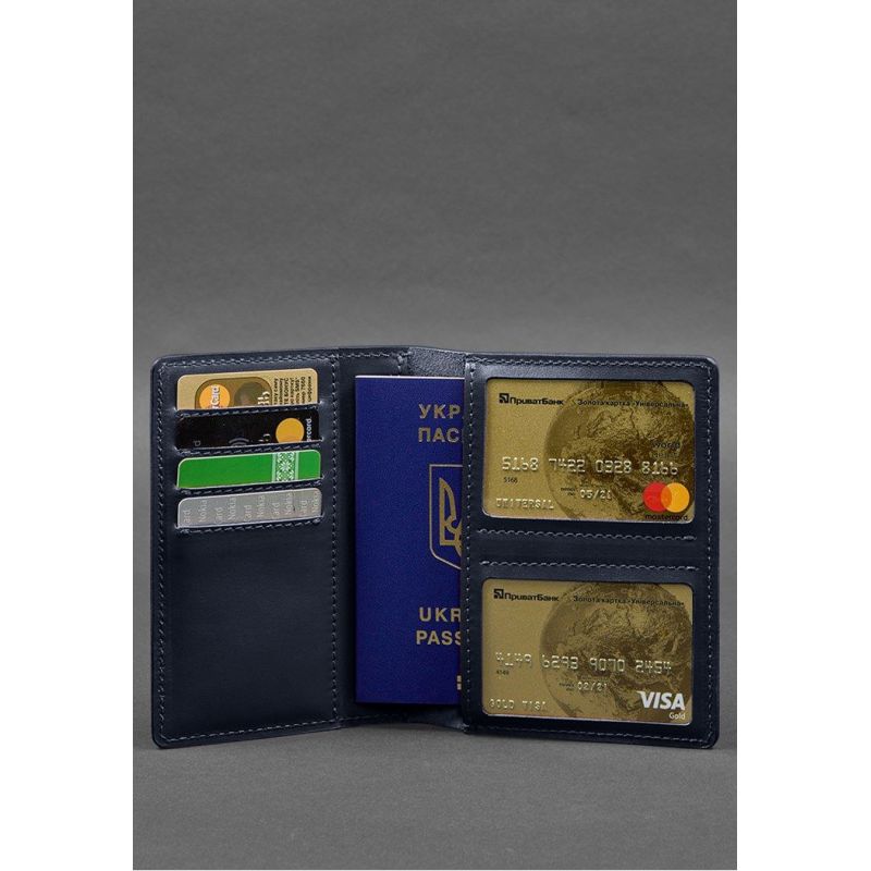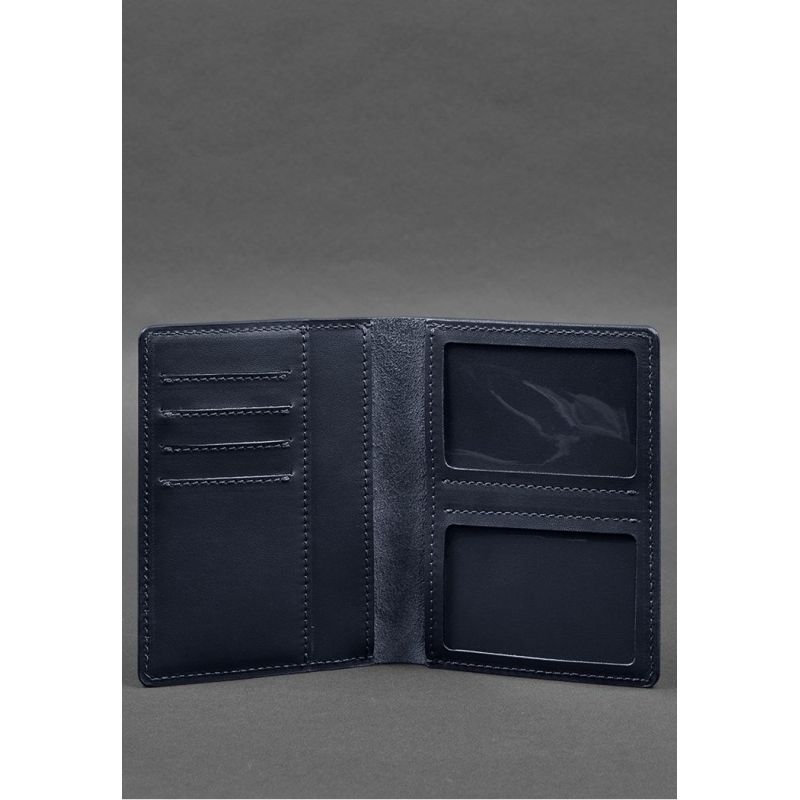 Кожаная обложка-органайзер для документов 6.1 темно-синий краст