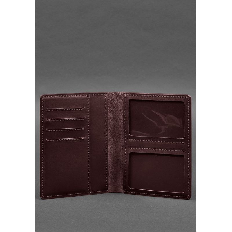 Кожаная обложка-органайзер для документов 6.1 бордовый краст