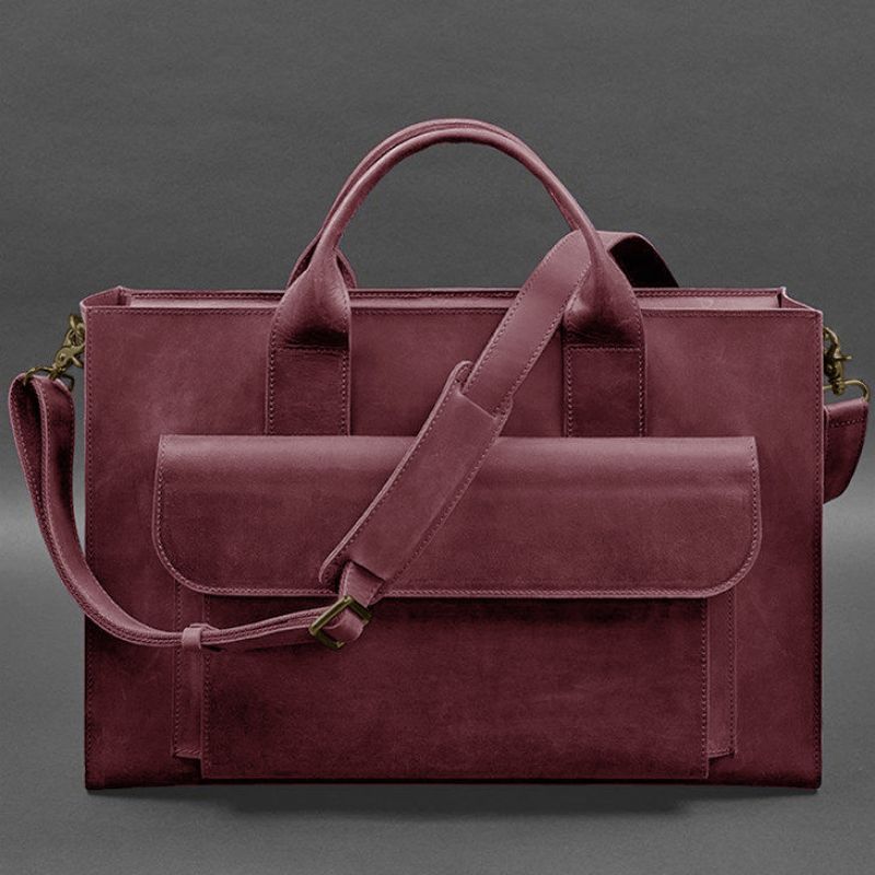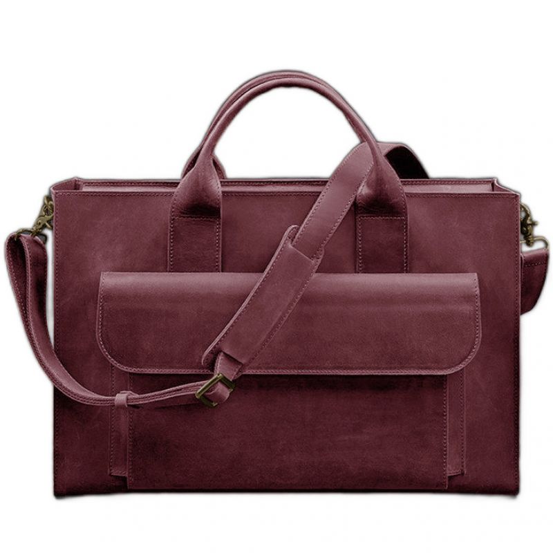 Кожаная сумка для ноутбука и документов Универсальная бордовая Crazy Horse