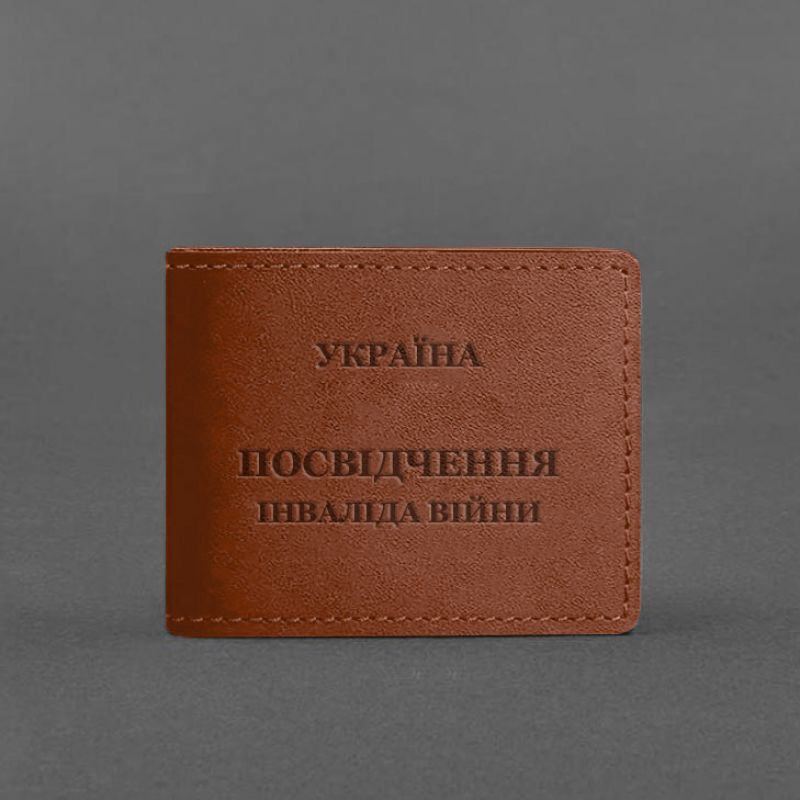 Кожаная обложка для удостоверения инвалида войны светло-коричневая