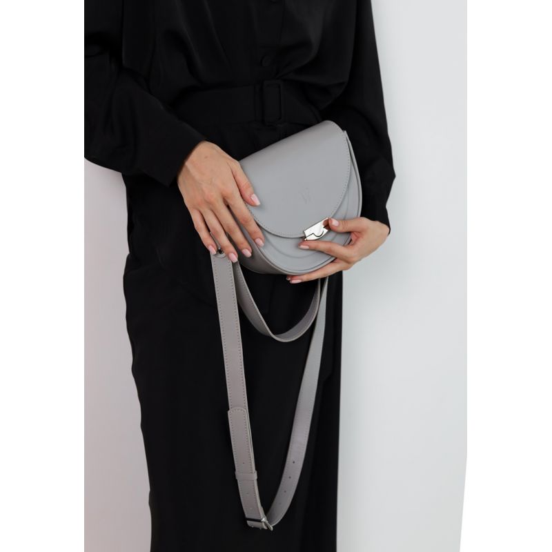 Женская кожаная сумка Kira серая – полукруглая сумка из натуральной кожи, которая сочетает в себе элегантность и практичность. Эта стильная сумка станет прекрасным аксессуаром для вашего повседневного или особого образа.