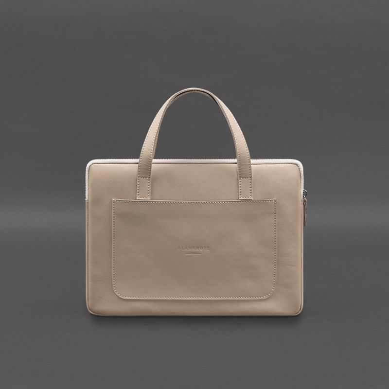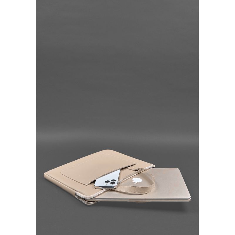 Кожаный чехол с ручками для ноутбука 13 дюйм Светло-бежевый