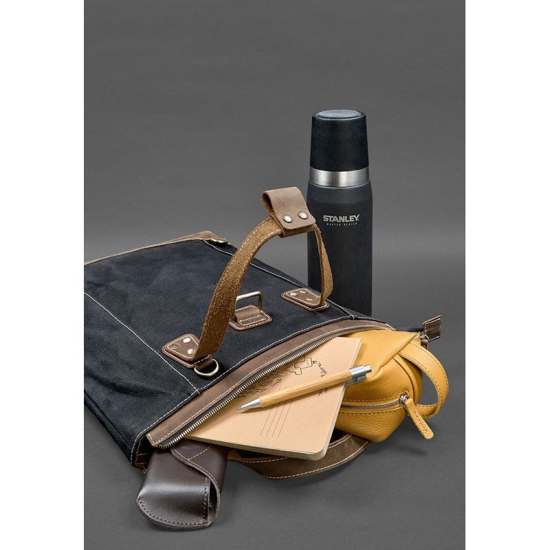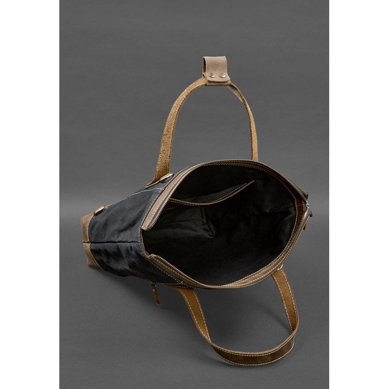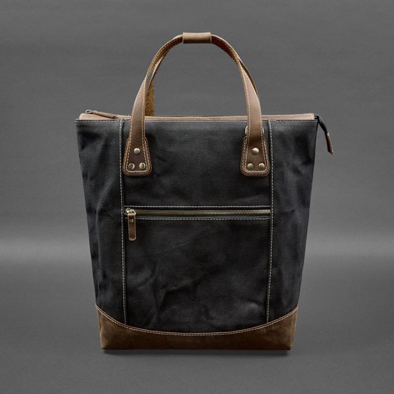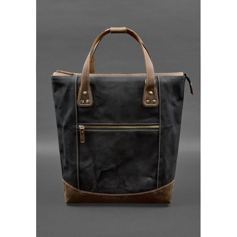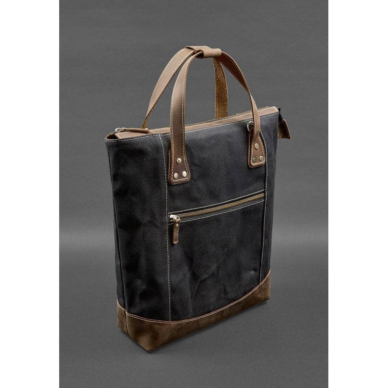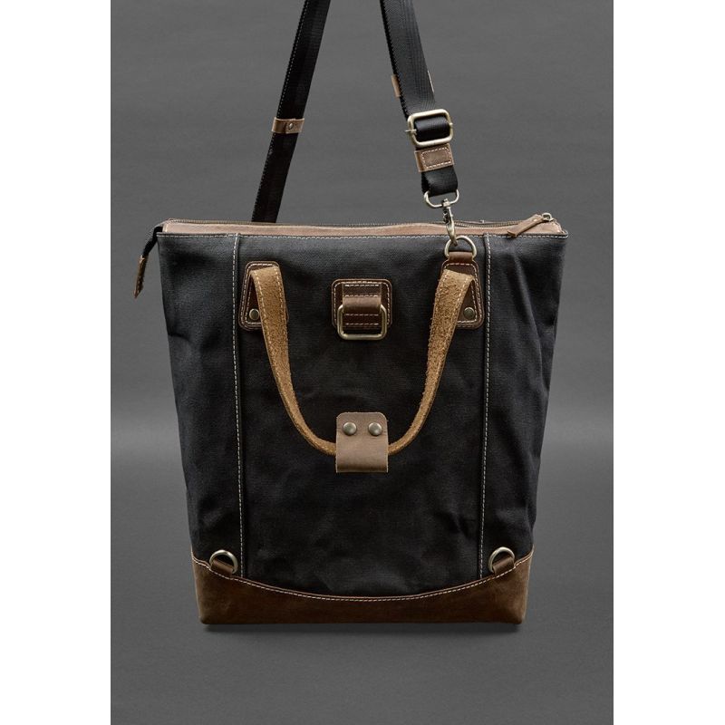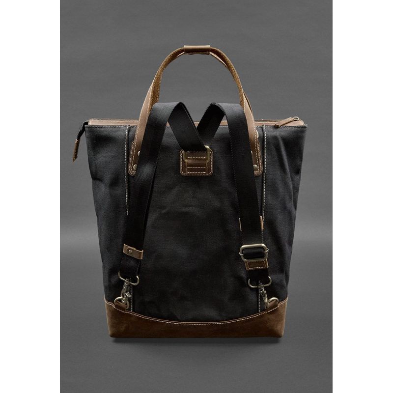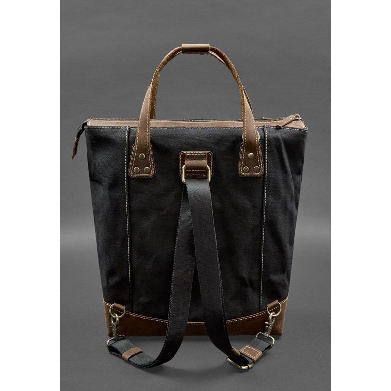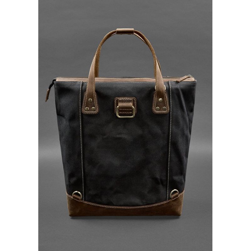 Сумка-рюкзак из канваса и натуральной темно-коричневой кожи