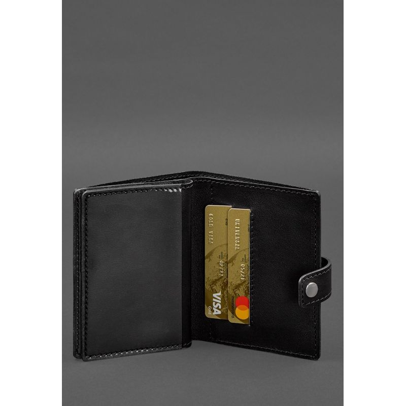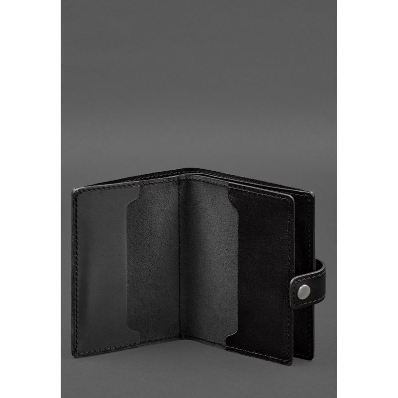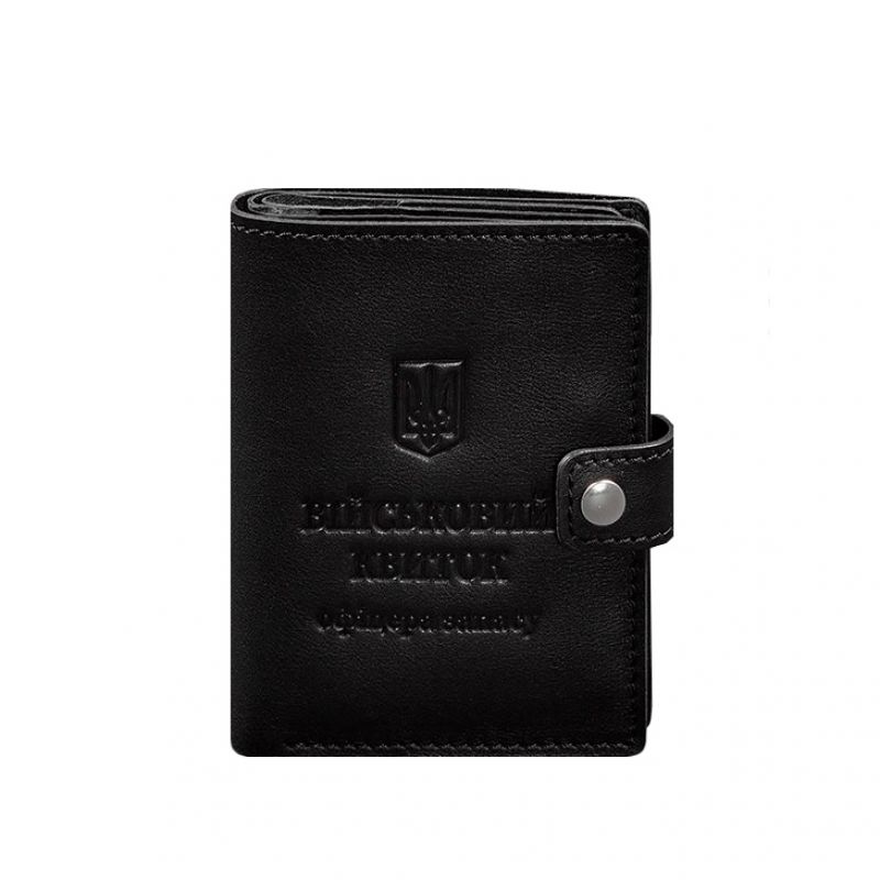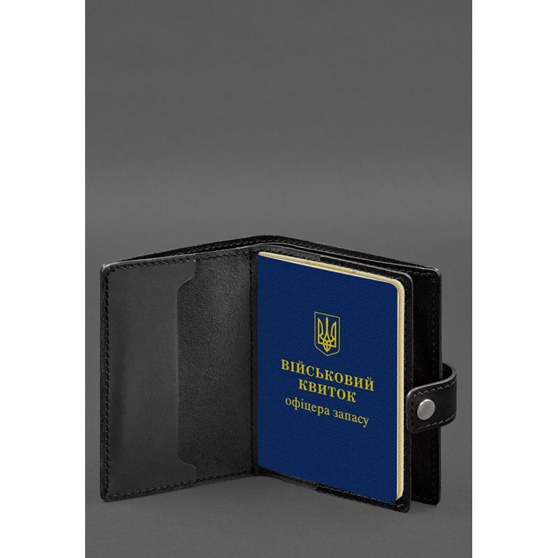 Кожаная обложка-портмоне для военного билета офицера запаса (узкий документ) Черная