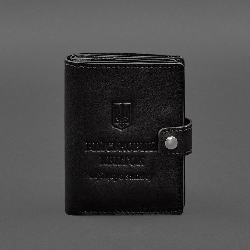 Кожаная обложка-портмоне на военный билет от бренда БланкНот специально разработана для бережного хранения вашего документа. Сшита из высококачественной натуральной кожи краст. Кожа краст достаточно крепкая и долговечная. Тиснение на лицевой стороне обложки-портмоне полностью дублирует оригинальный бланк документа. Вверху расположен герб Украины, посередине находится надпись «Військовий квиток офіцера запасу» Обратите внимание, что в Украине внедрено два бланка для военных билетов офицера запаса. Данная обложка подходит для более узкого документа, который имеет приблизительный размер 8х12 см. Если у Вас документ более широкого формата, рекомендуем обратить внимание на другую модель портмоне-обложки. Внутри одно отделение для купюр, отдельный разворот для документа, 2 слота для пластиковых карточек, одно отделение с прозрачным окошком. Почему стоит купить Черную кожаную обложку-портмоне на военный билет (BN-OP-21-g) от BlankNote? Качественная натуральная кожа Четкое и хорошее тиснение Ручная работы Гарантия 3 года Наши мастера могут изготовить обложку в любом другом цвете. Также изделие можно персонализировать. Обратите внимание на наши изделия с украинской символикой. Рекомендуем обложки для паспорта с гербом Украины. Гарантия на обложку - 3 года с момента покупки. Фурнитура и комплектация может быть изменена производителем