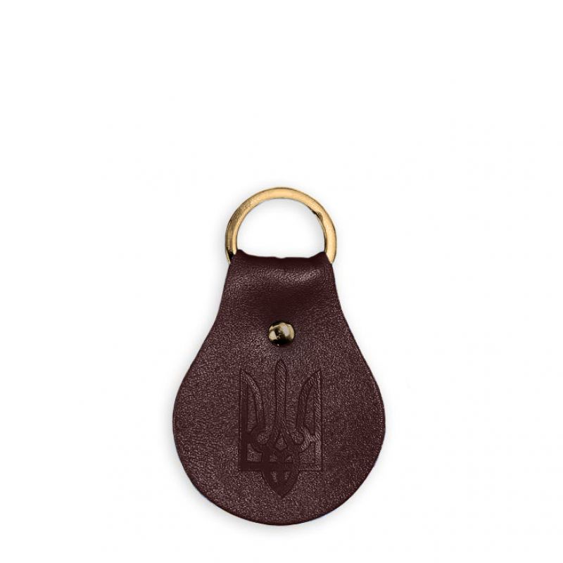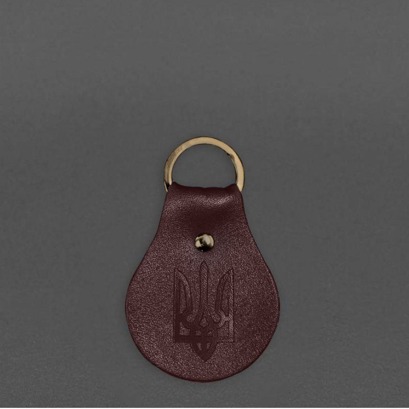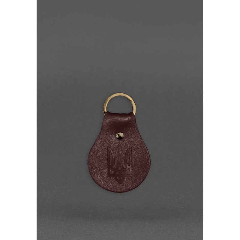 Изготовлен брелок из высококачественной натуральной кожи бордового цвета. Одна сторона брелока украшена тиснением в виде Трезубца.
