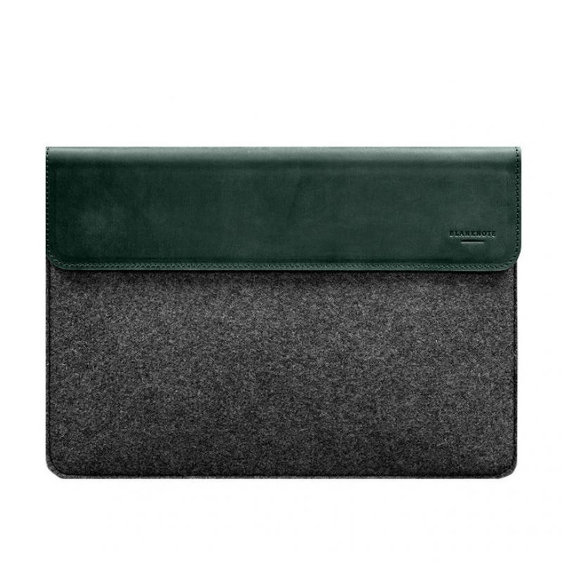 Чехол для ноутбука 13” - стильный аксессуар из фетра и натуральной кожи, который защитит ваше устройство от сколов, царапин, пыли и грязи! Аксессуар изготовлен из высококачественной мягкой кожи Crazy Horse в черном цвете и эко-фетра. Благодаря свойствам этой кожи защитный чехол даже после длительного использования будет выглядеть превосходно. Фетр обработан специальной пропиткой, которая защищает материал от влаги и повреждений. Чехол-конверт изготовлен полностью вручную. Выдержанный классический дизайн аксессуара сделает его статусным атрибутом вашего стиля. Чехол предназначен для любых моделей ноутбуков и планшетов, которые сопоставимы по размеру к MacBook Pro 13". Аксессуар идеально совместим со всеми ноутбуками компании Apple. Поверхность чехла не требует специального сложного ухода. Обратите внимание! В нашем магазине Бланкнот вы можете заказать кожаный чехол для ноутбука с любыми изменениями. Наши мастера могут изготовить чехол по параметрам Вашего ноутбука, можно убрать или заменить логотип на чехле, также Вы можете воспользоваться услугой персонализации изделий. Гарантия на аксессуар - 3 года с момента покупки. ВНИМАНИЕ! Выделка данной кожи предполагает естественное появление на ней царапин и потертостей в ходе использования! От этого изделие становится более индивидуальным и приятным, это оценят настоящие поклонники винтажного стиля:)  А так же первое время кожа может краситься при сильном трении об другие предметы  - это особенность её выделки, постепенно этот эффект уменьшается,  кожа полируется и приобретает чуть глянцевый эффект. Фурнитура и комплектация может быть изменена производителем