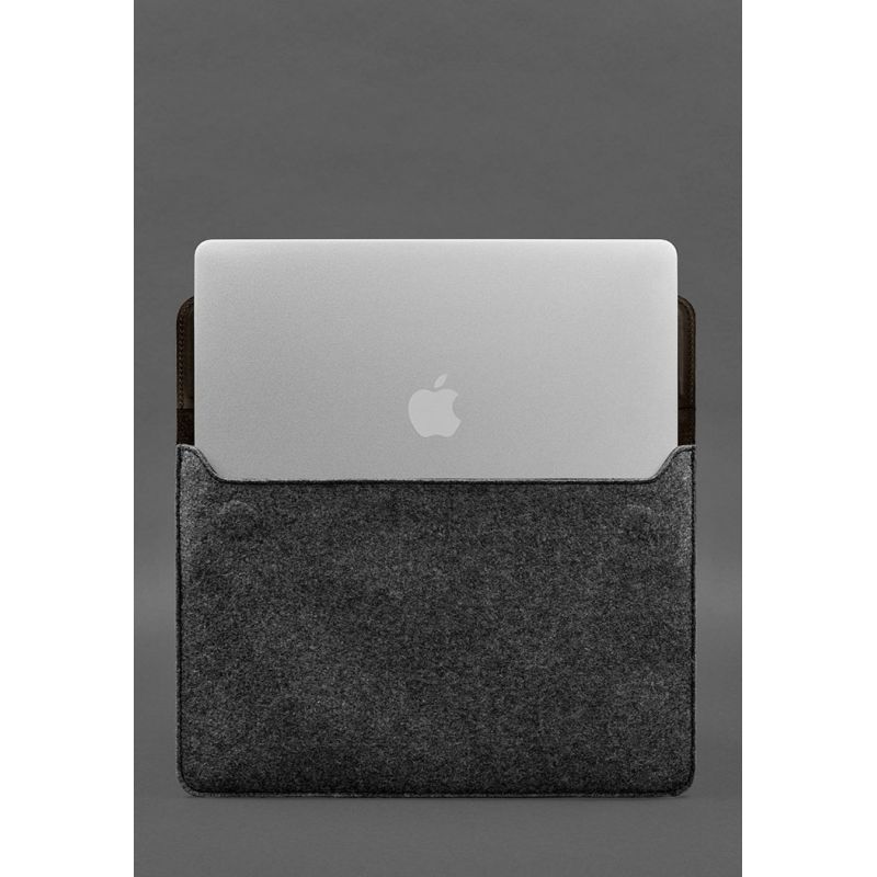 Чехол-конверт с клапаном кожа+фетр для MacBook 13" Темно-коричневый Crazy Horse