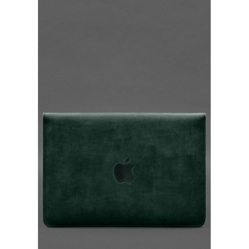 Чехол-конверт с клапаном кожа+фетр для MacBook 16" Зеленый Crazy Horse