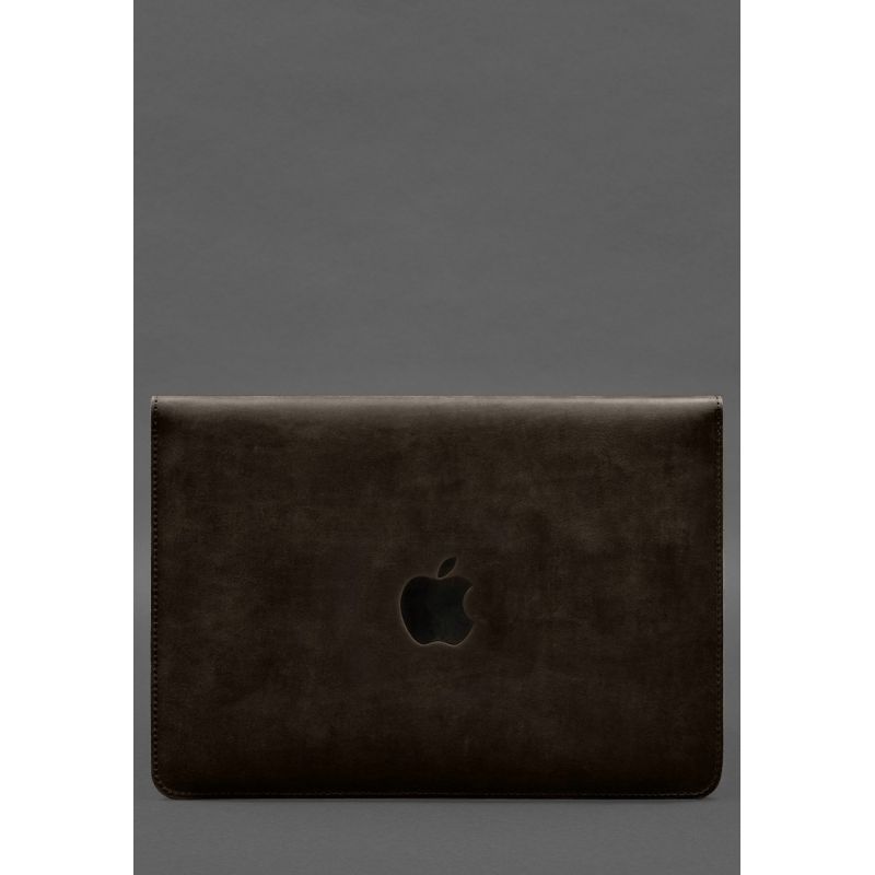 Чехол-конверт с клапаном кожа+фетр для MacBook 16" Темно-коричневый Crazy Horse