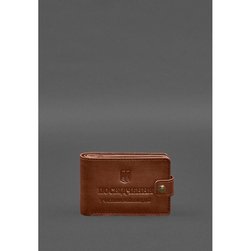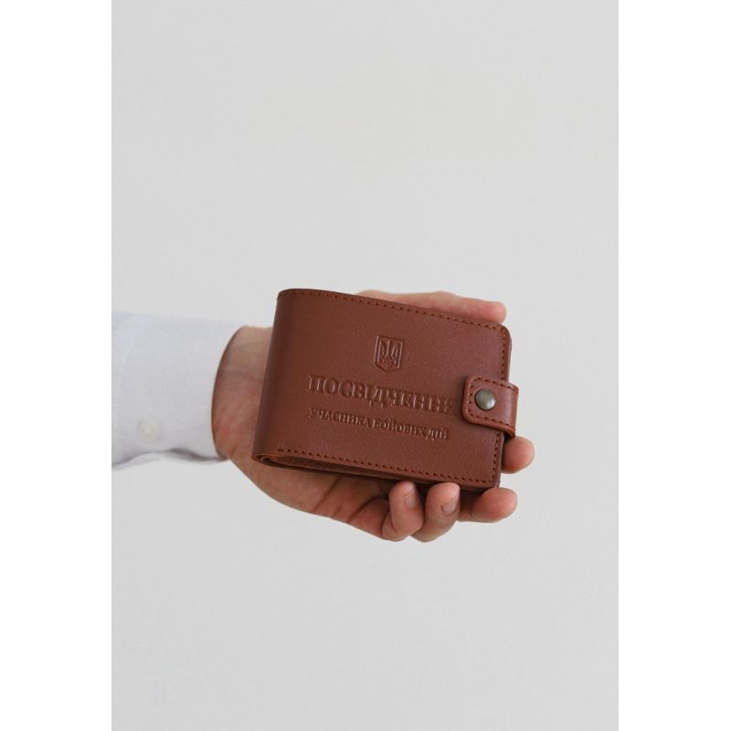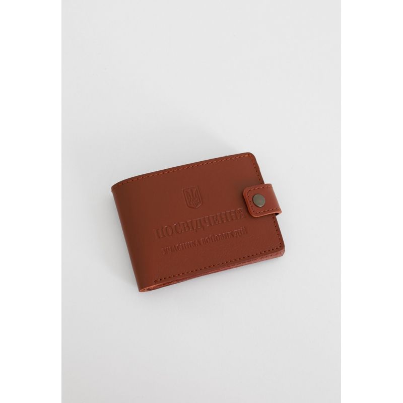 Кожаная обложка-портмоне для удостоверения участника боевых действий (УБД) Светло-коричневая