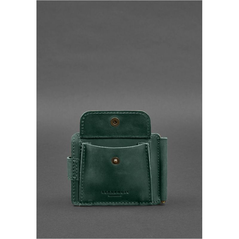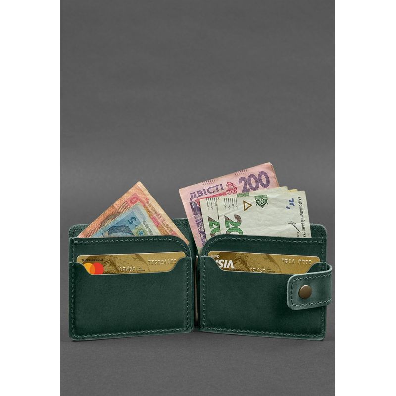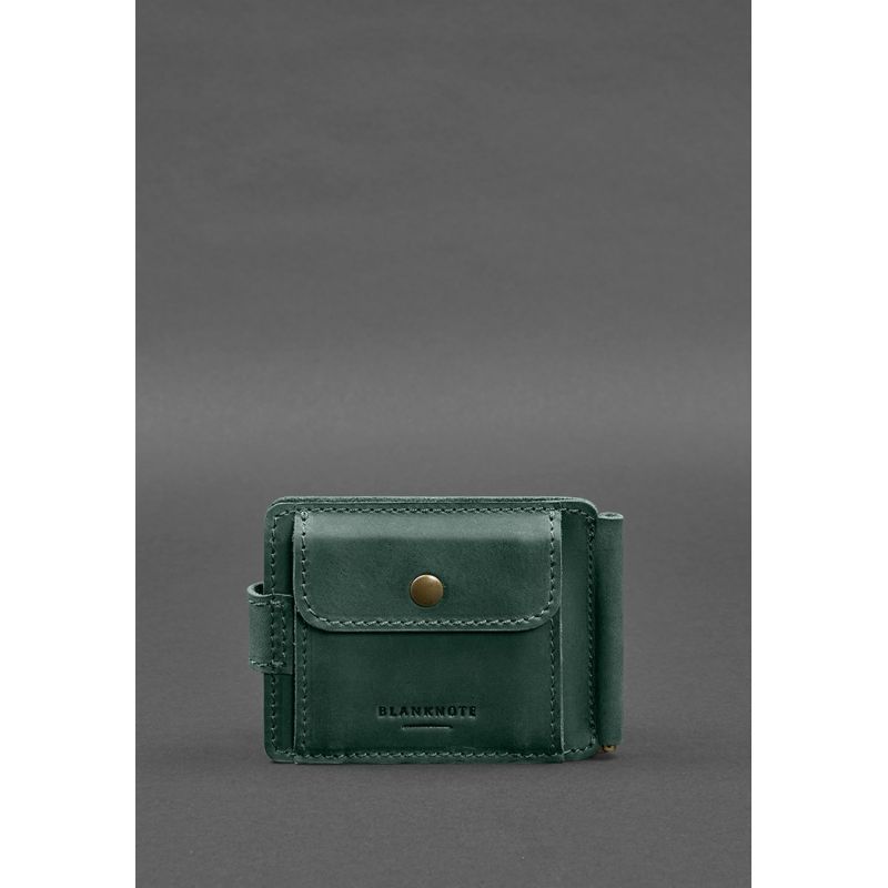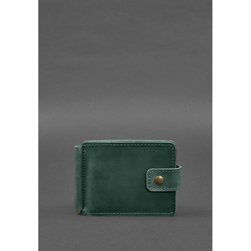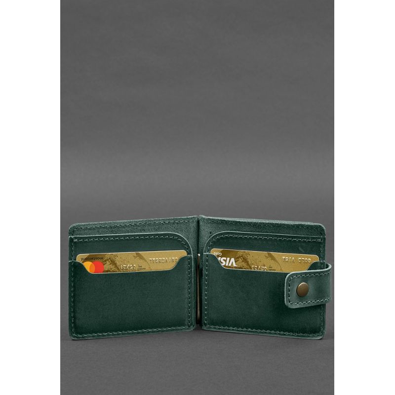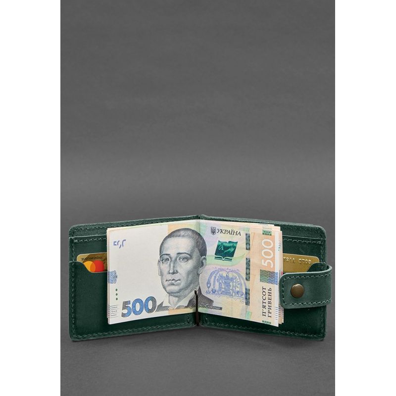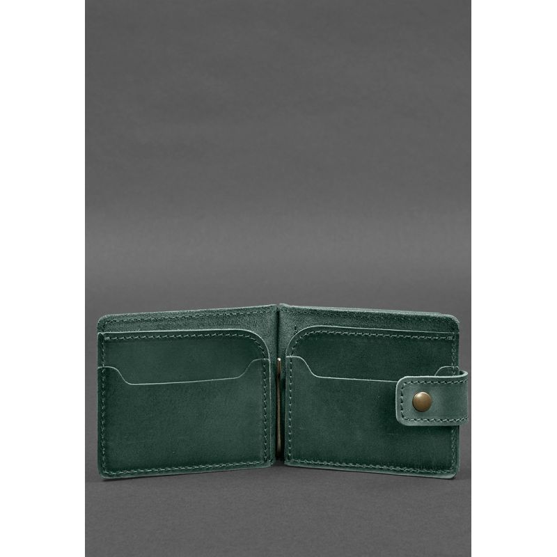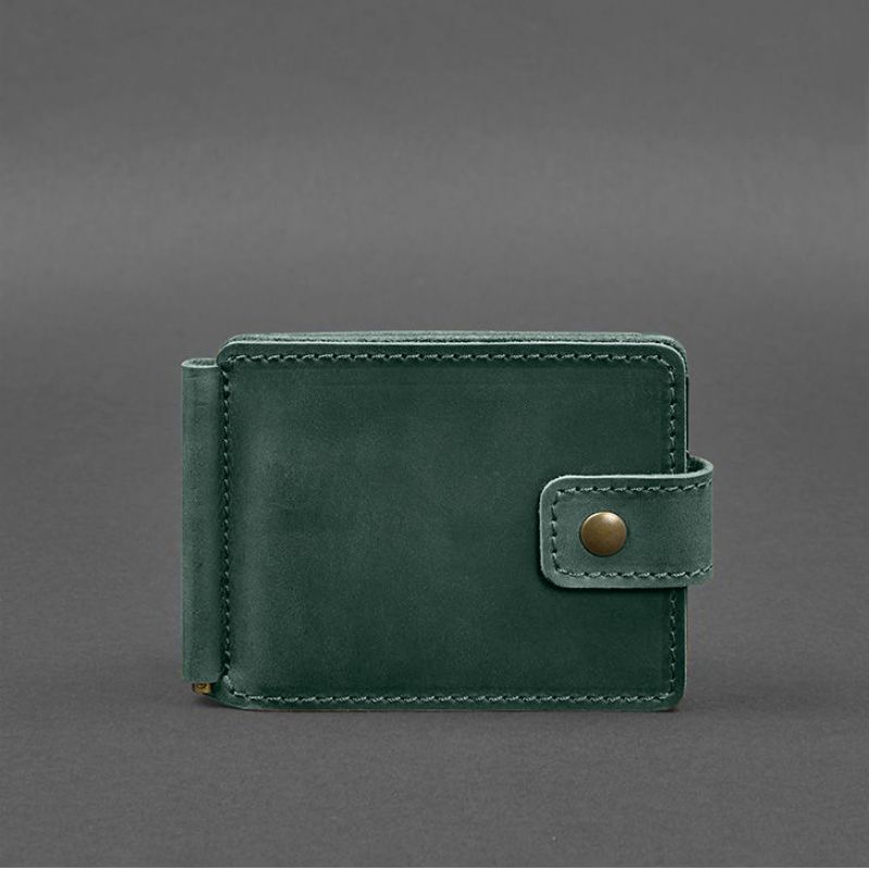 Кожаное портмоне 13.1 зажим с хлястиком Зеленый Crazy Horse