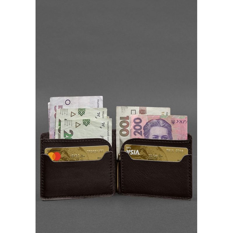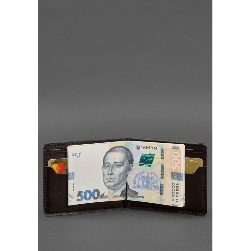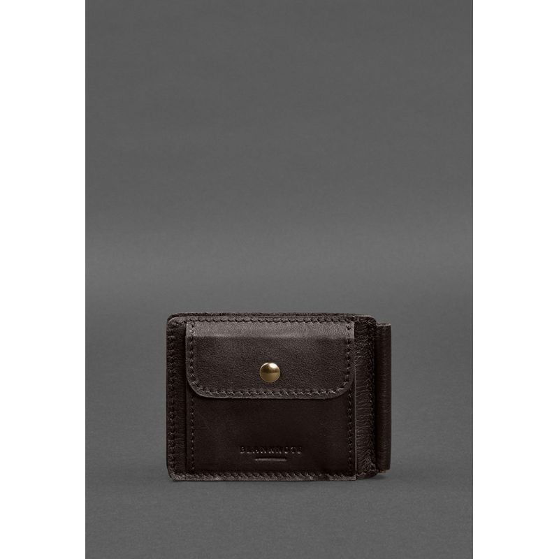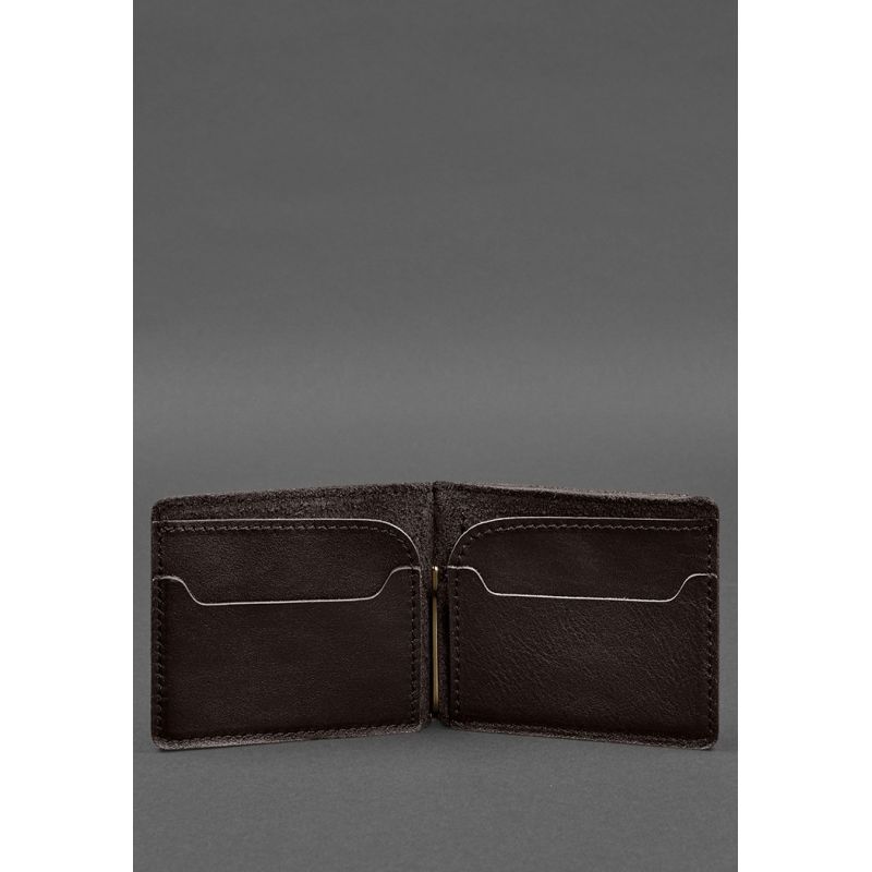 Кожаное портмоне 13.0 зажим темно-коричневый краст