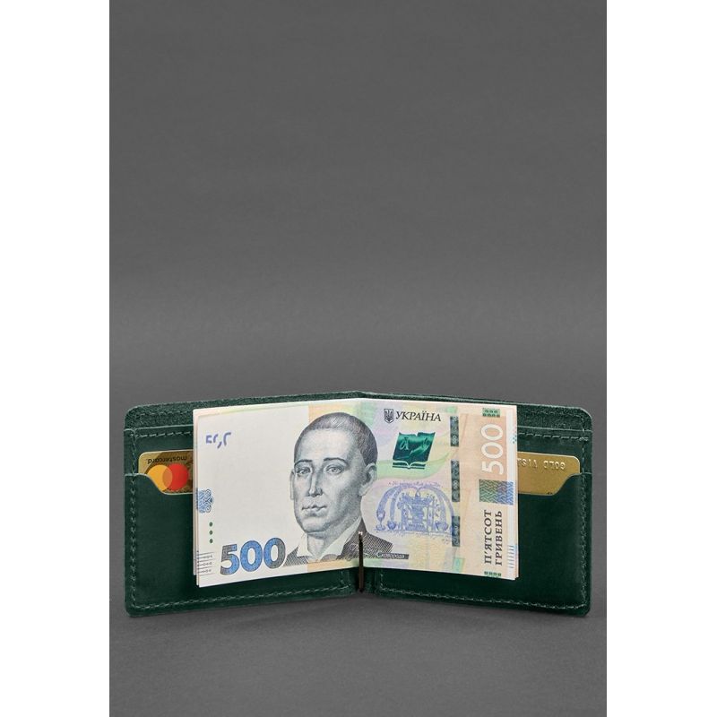Кожаное портмоне 13.0 зажим Зеленый Crazy Horse