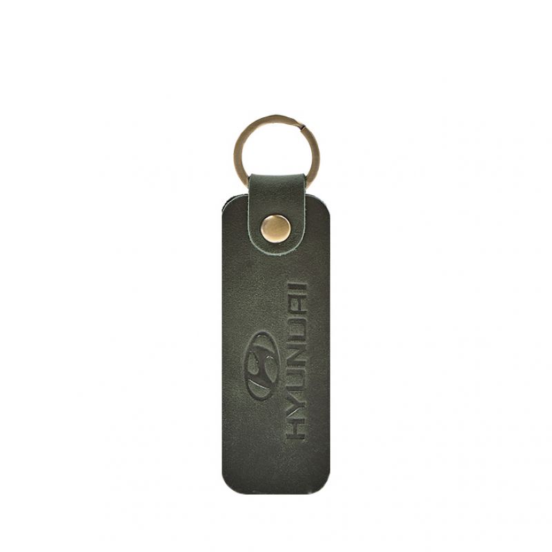 Стильный брелок изготовлен из натуральной кожи и украшен тиснением в виде логотипа Hyndai