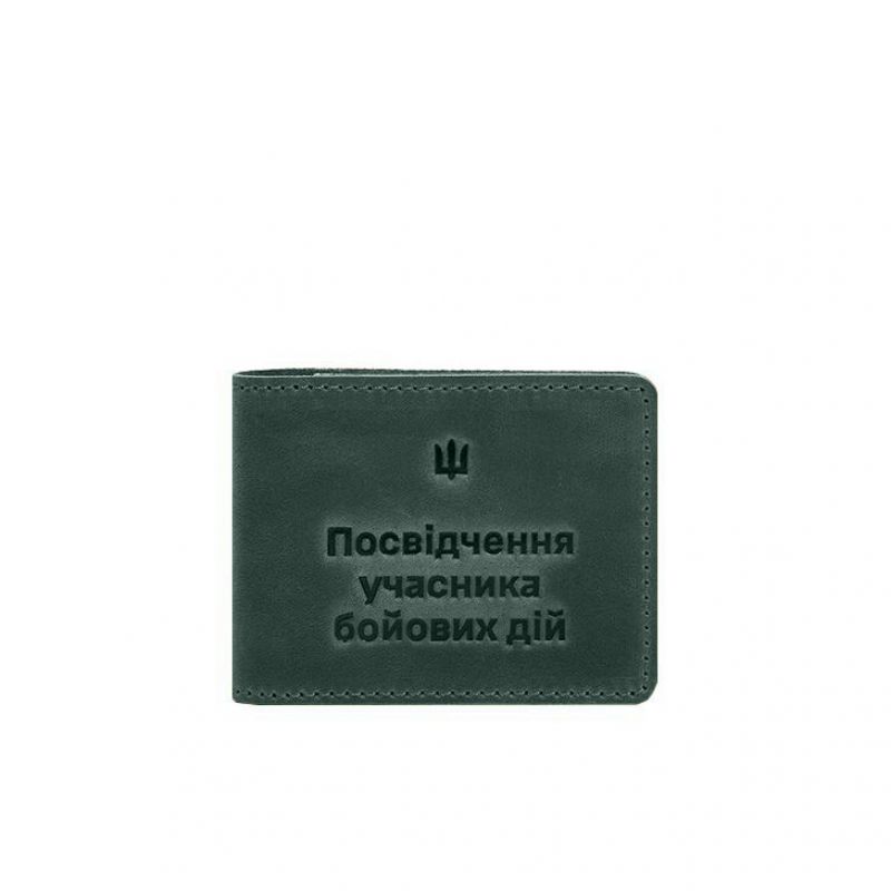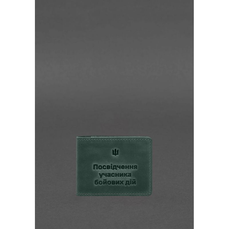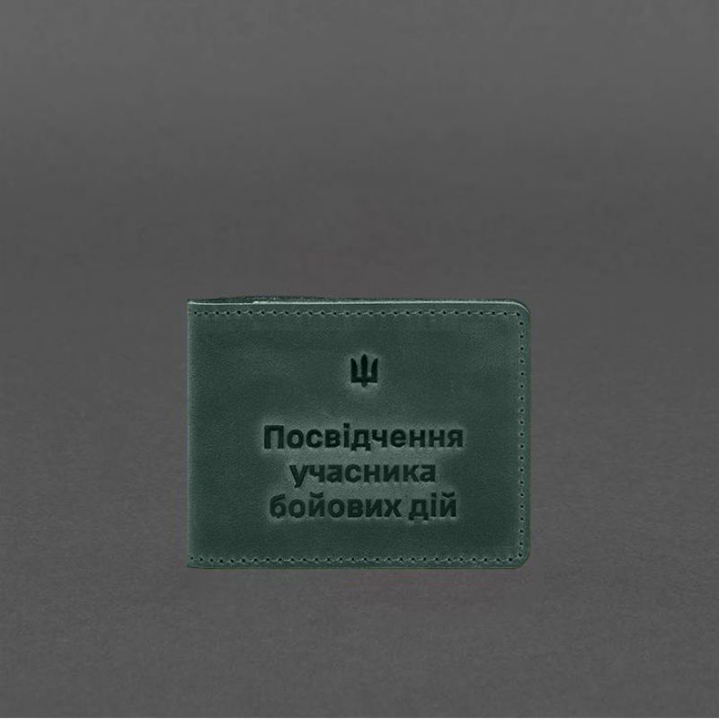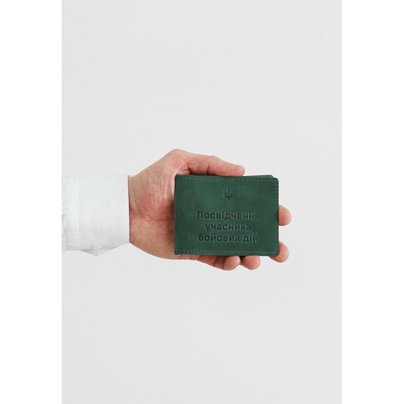 Кожаная обложка для удостоверения участника боевых действий (УБД) 2.2 зеленый Crazy Horse