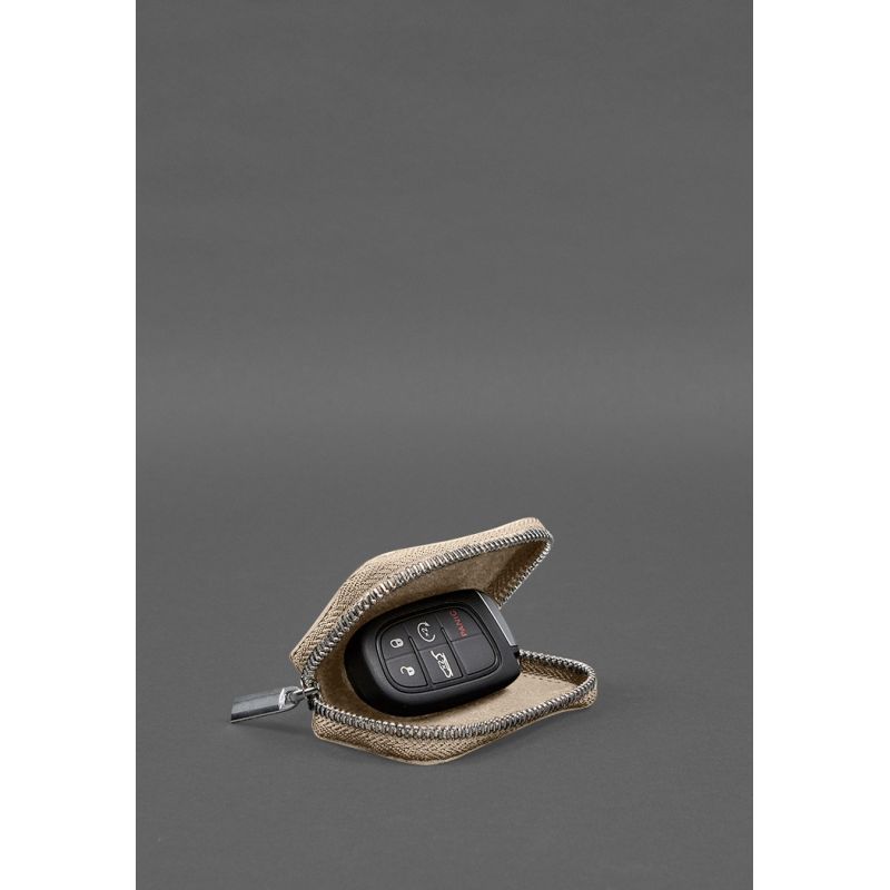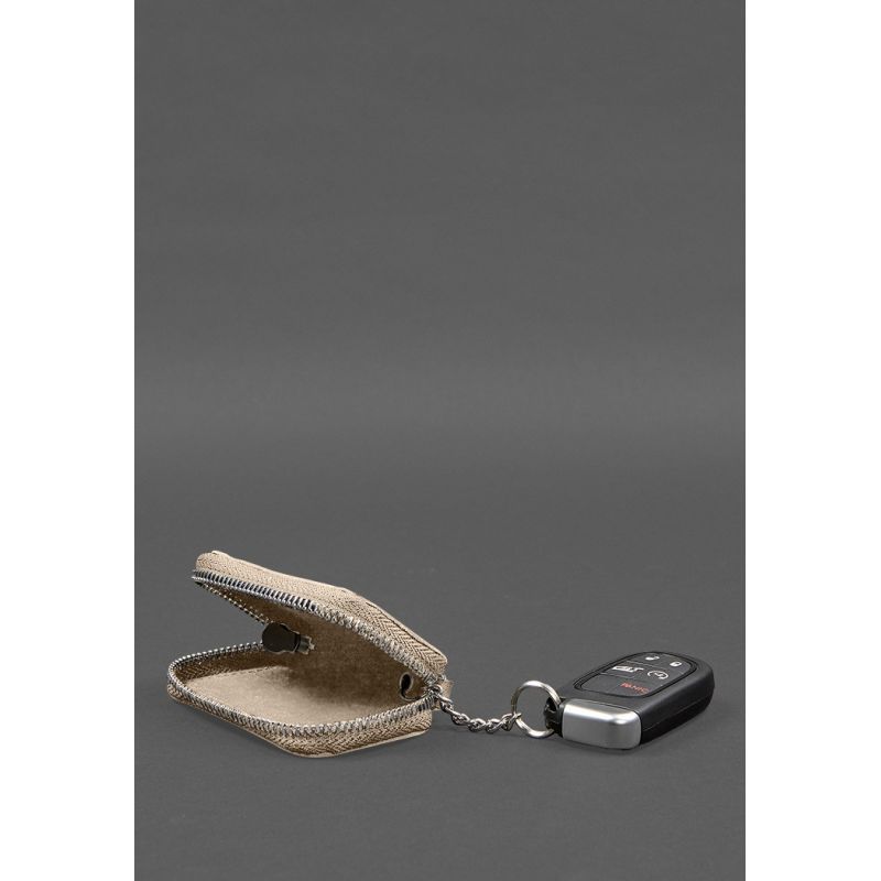 Кожаный чехол для автомобильного ключа светло-бежевый краст