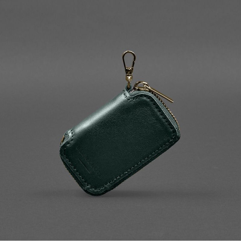 Кожаный чехол для автомобильного ключа зеленый краст