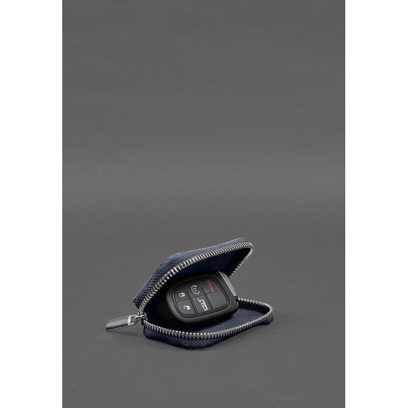 Кожаный чехол для автомобильного ключа синий краст