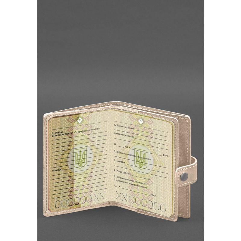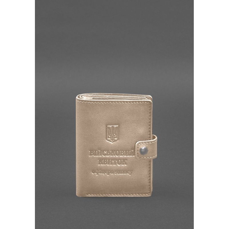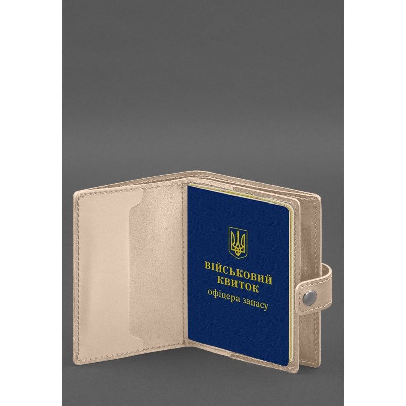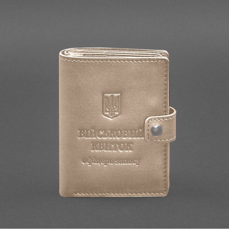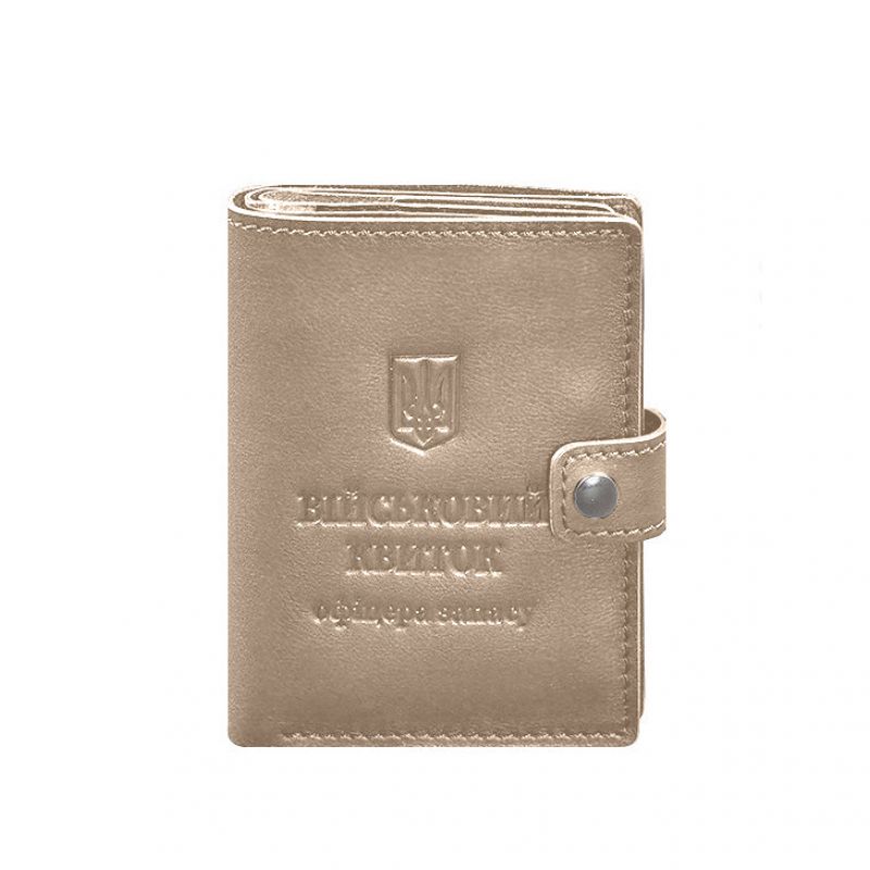 Кожаная обложка-портмоне для военного билета офицера запаса (узкий документ) Светло-бежевый