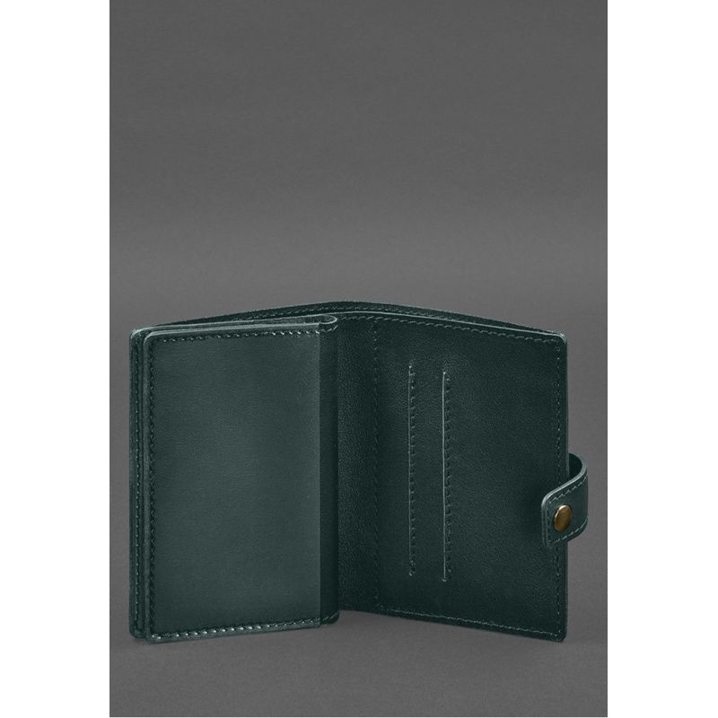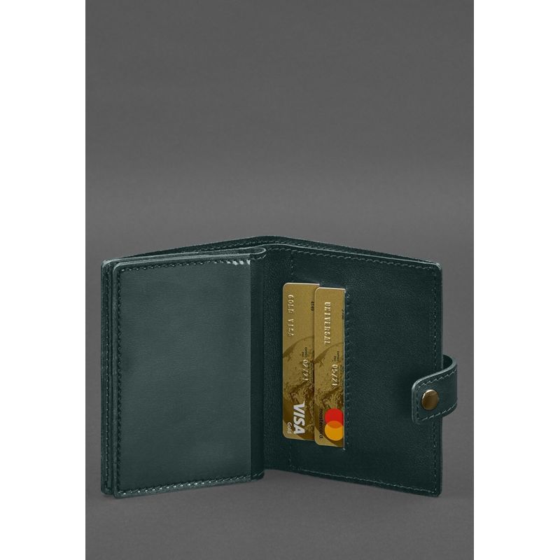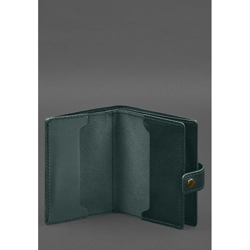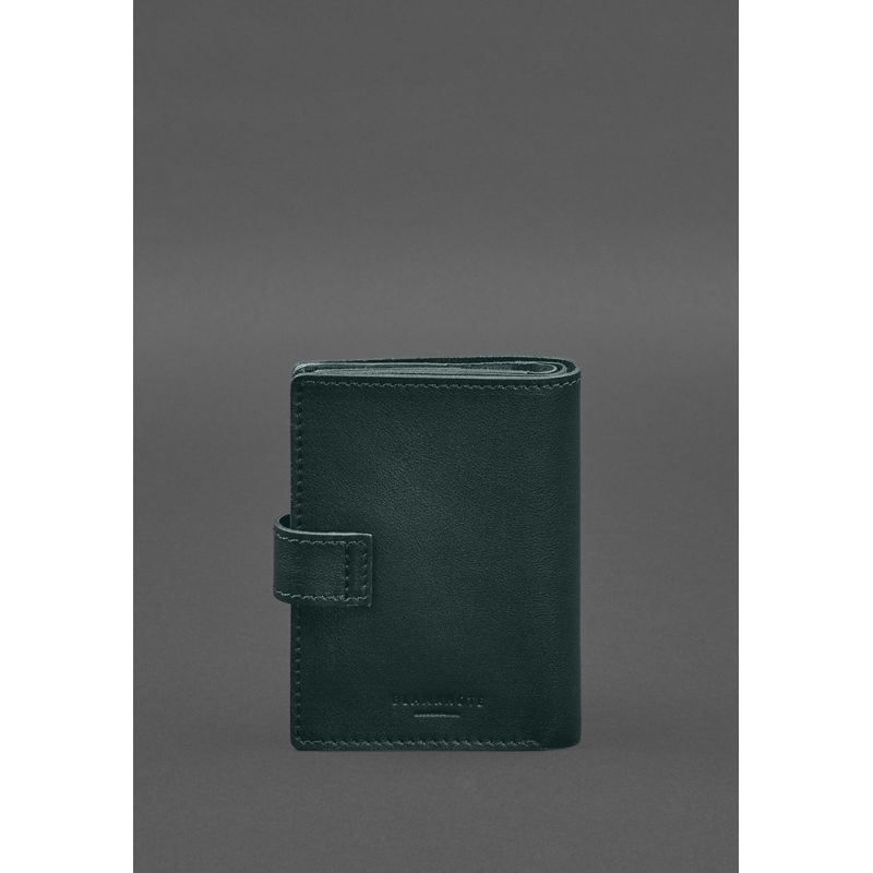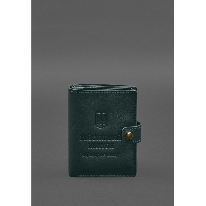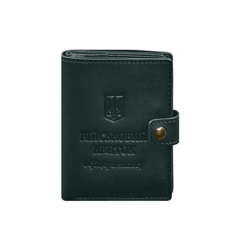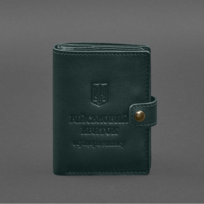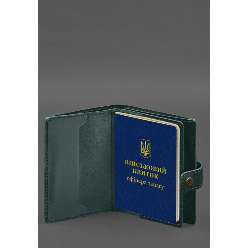 Кожаная обложка-портмоне для военного билета офицера запаса (узкий документ) Зеленый