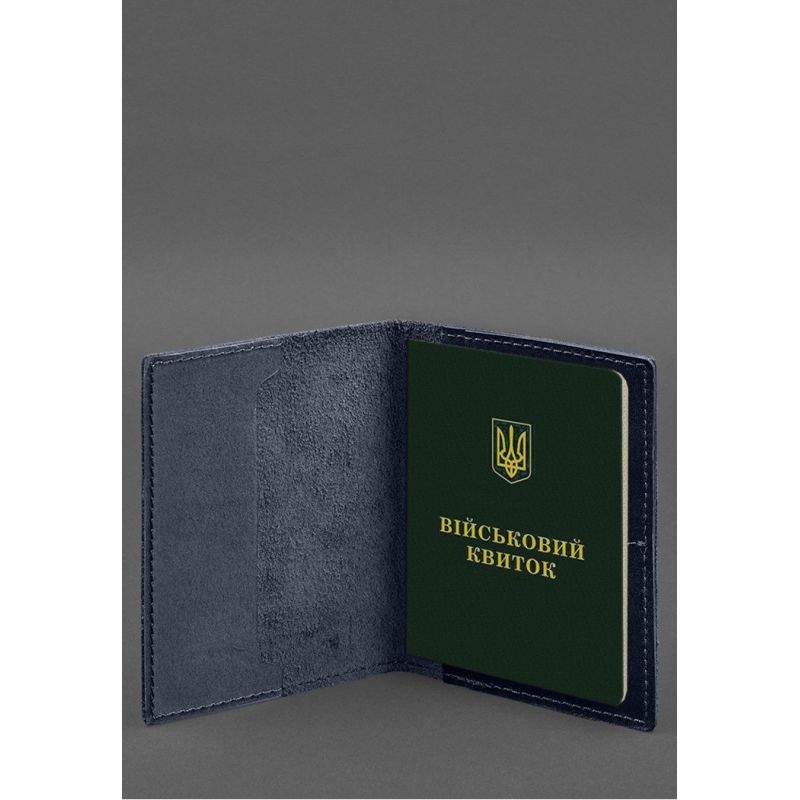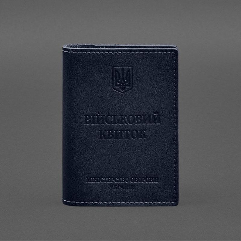 Кожаная обложка для военного билета с карманами 7.2 синий краст