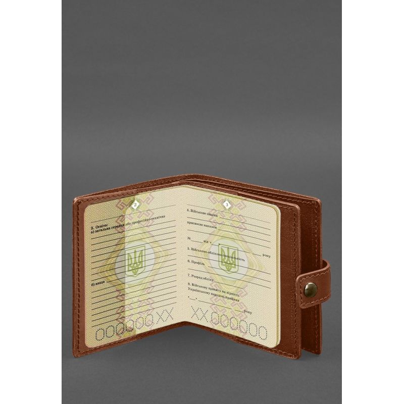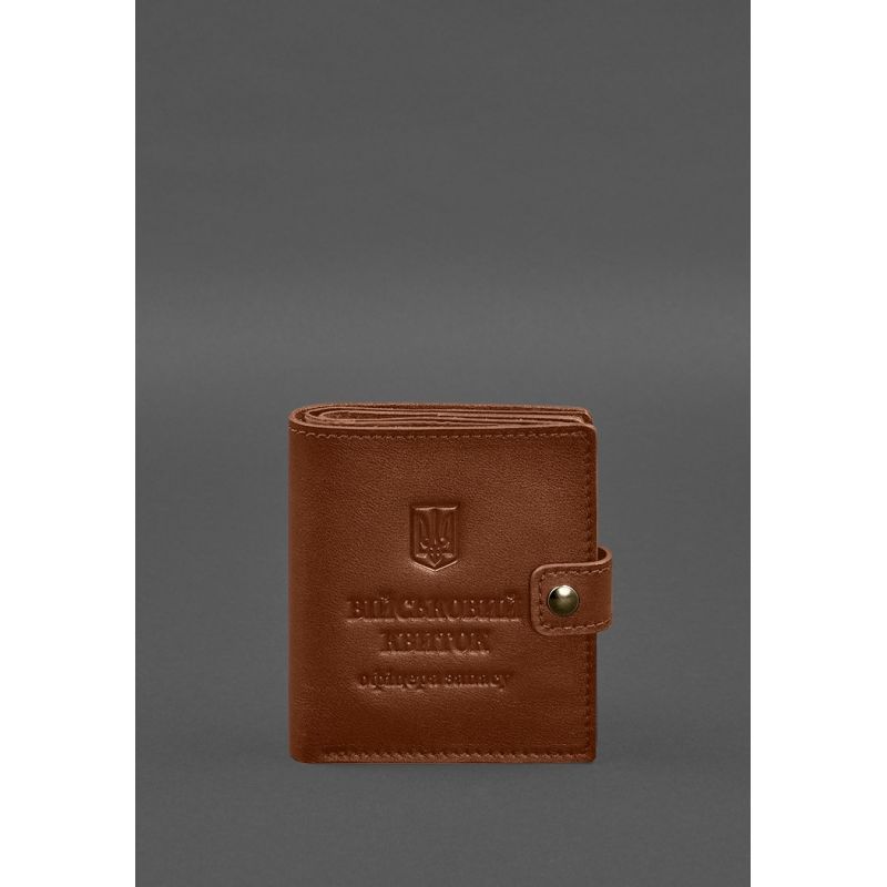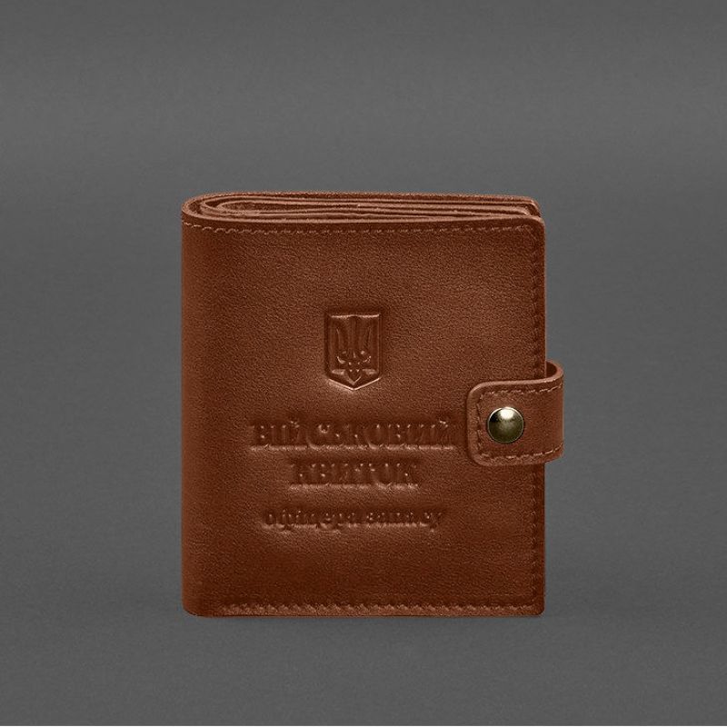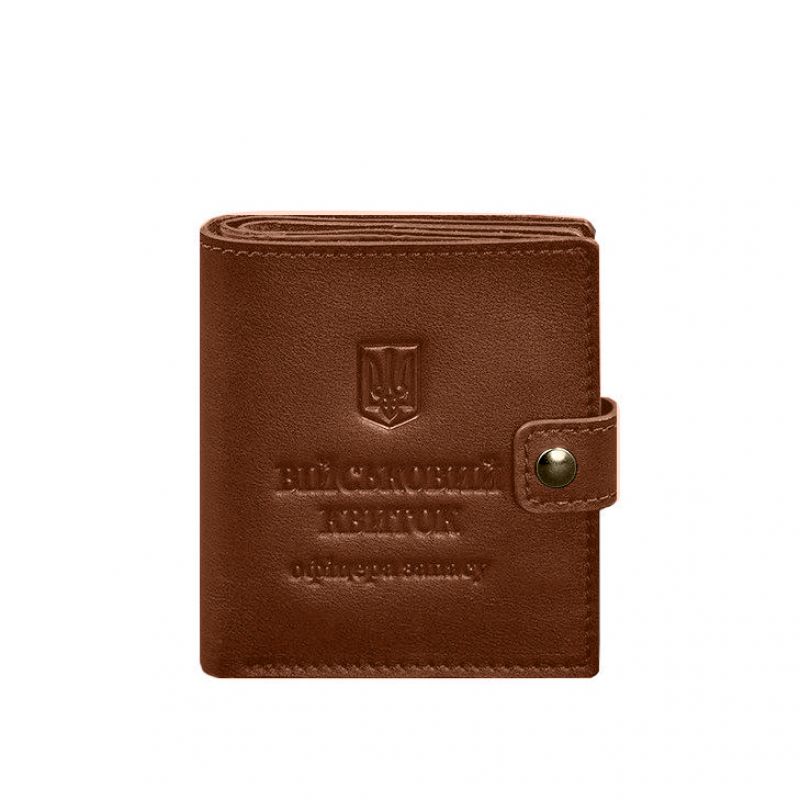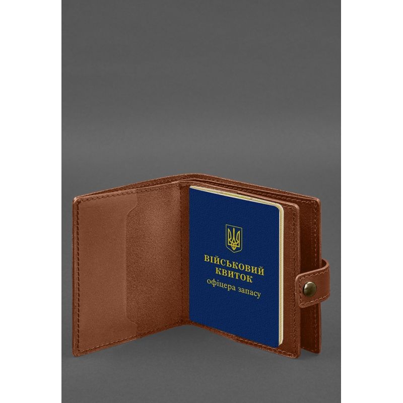 Кожаная обложка-портмоне для военного билета офицера запаса (широкий документ) Светло-коричневый