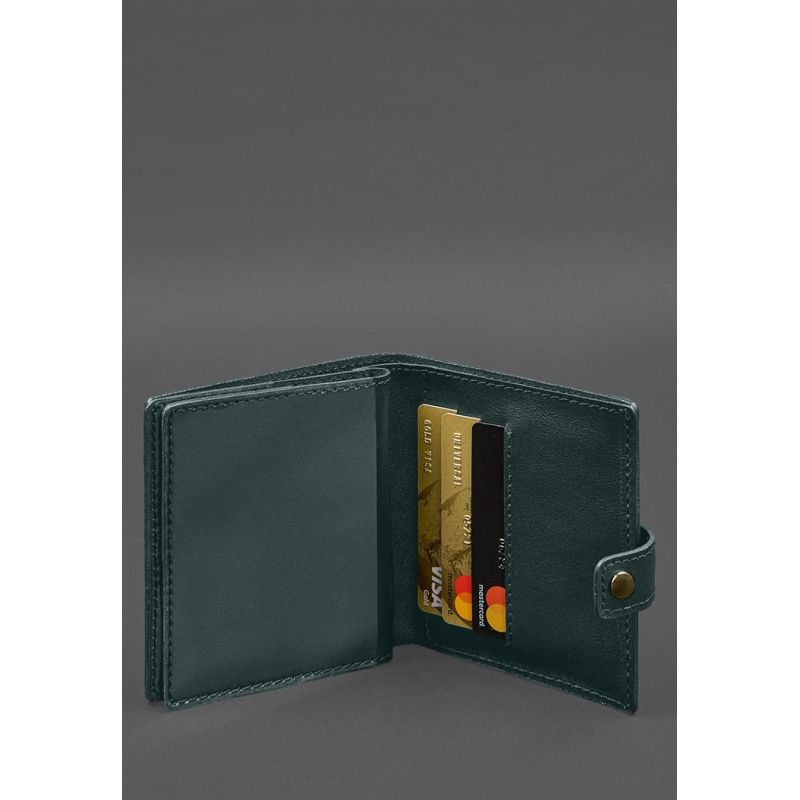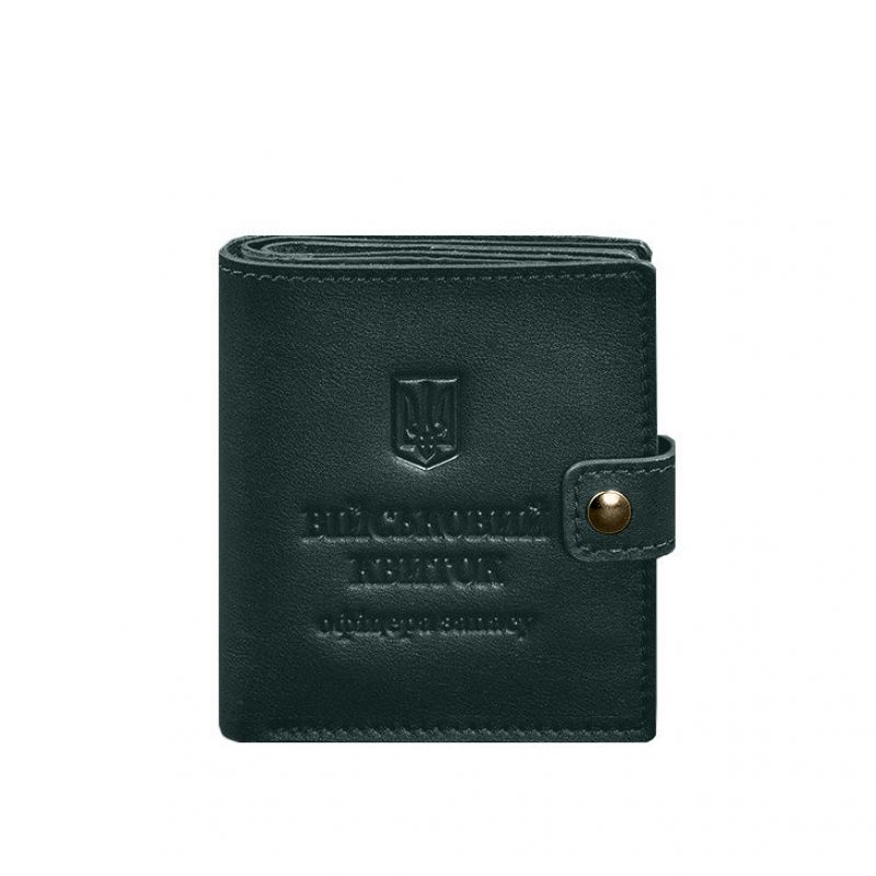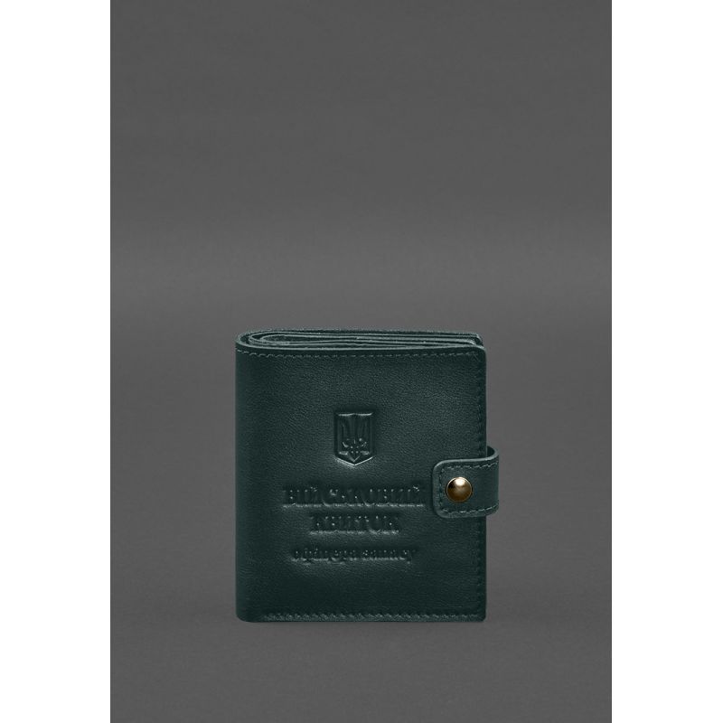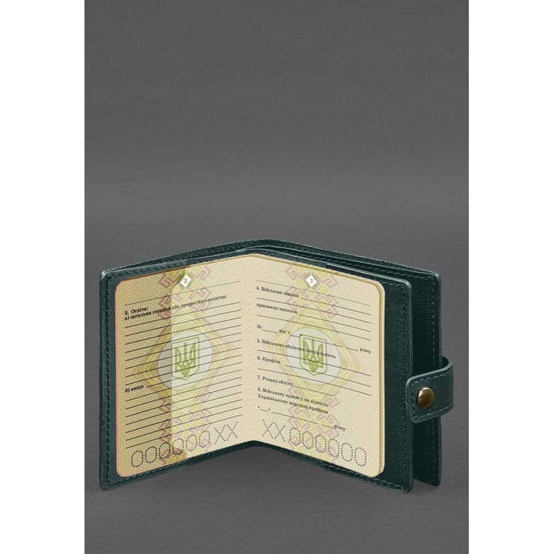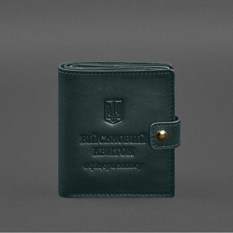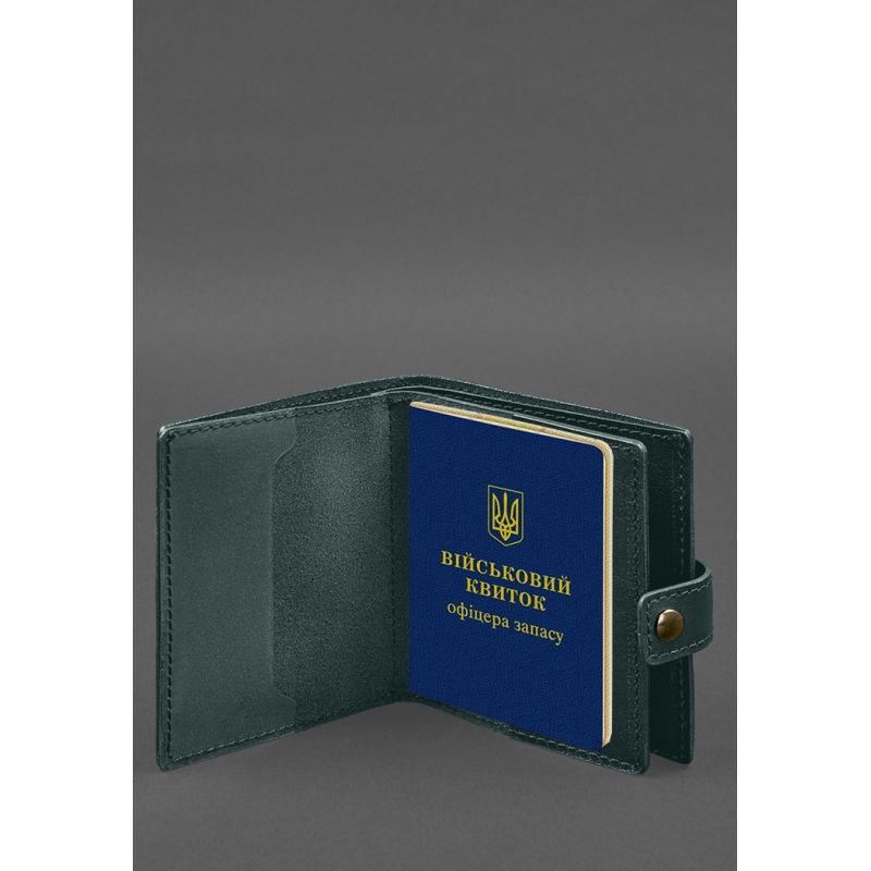 Кожаная обложка-портмоне для военного билета офицера запаса (широкий документ) Зеленый