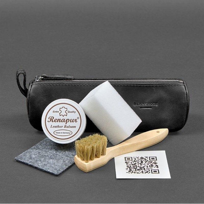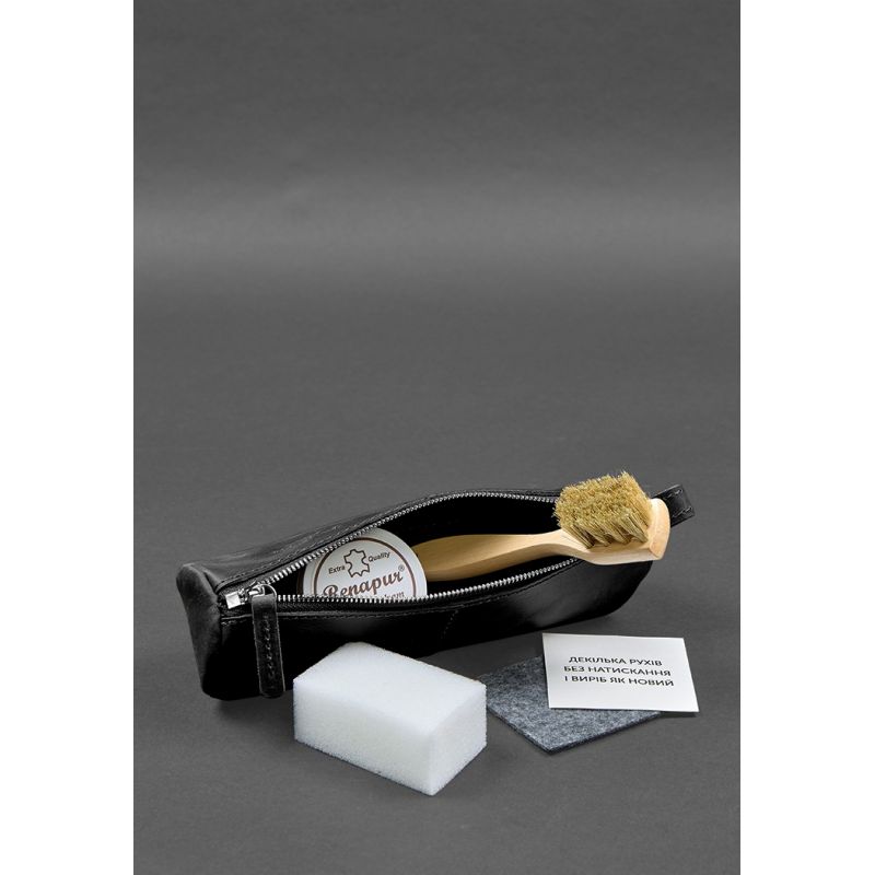 Набор для ухода за кожаными изделиями в кожаном чехле черный