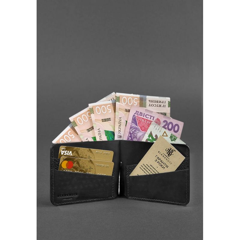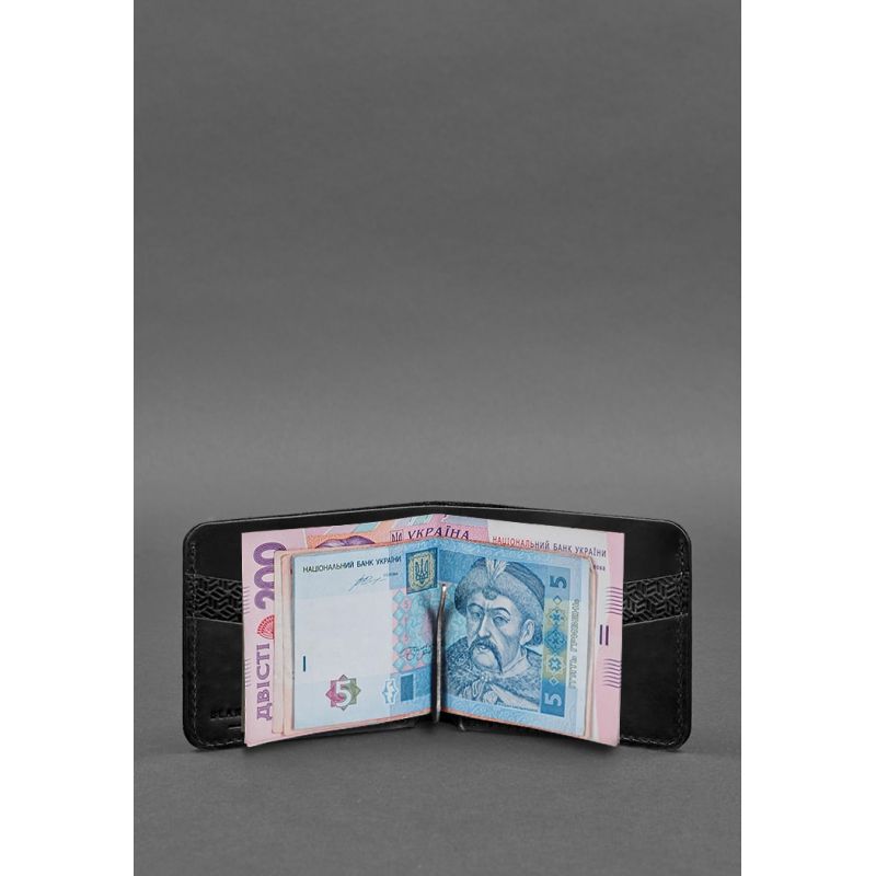 Кожаное портмоне 4.4 (с зажимом) черный Crazy Horse карбон