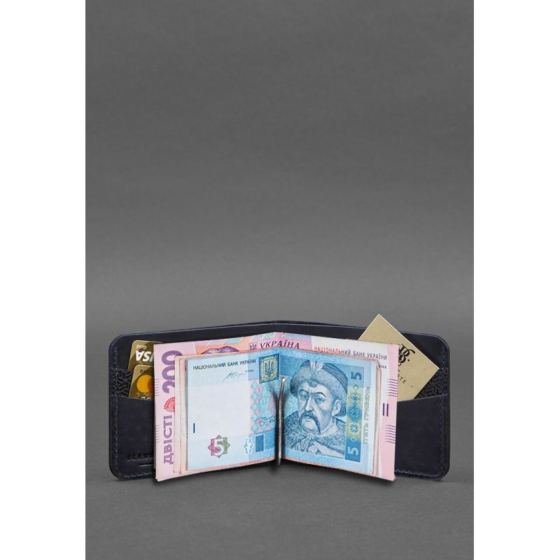 Кожаное портмоне 4.4 (с зажимом) синий Crazy Horse карбон
