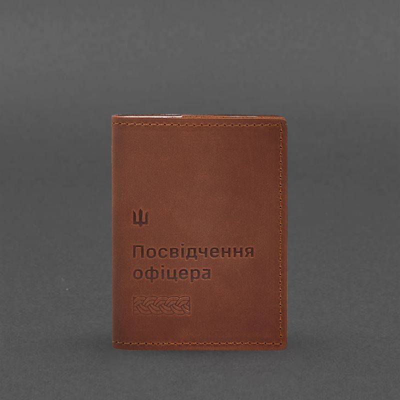 Кожаная обложка для удостоверения офицера 9.2 светло-коричневая Crazy Horse