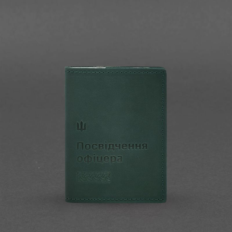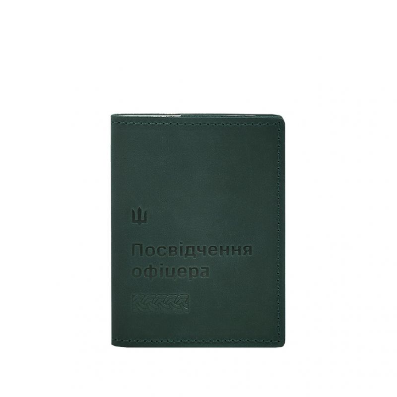 Кожаная обложка для удостоверения офицера 9.2 зеленая Crazy Horse