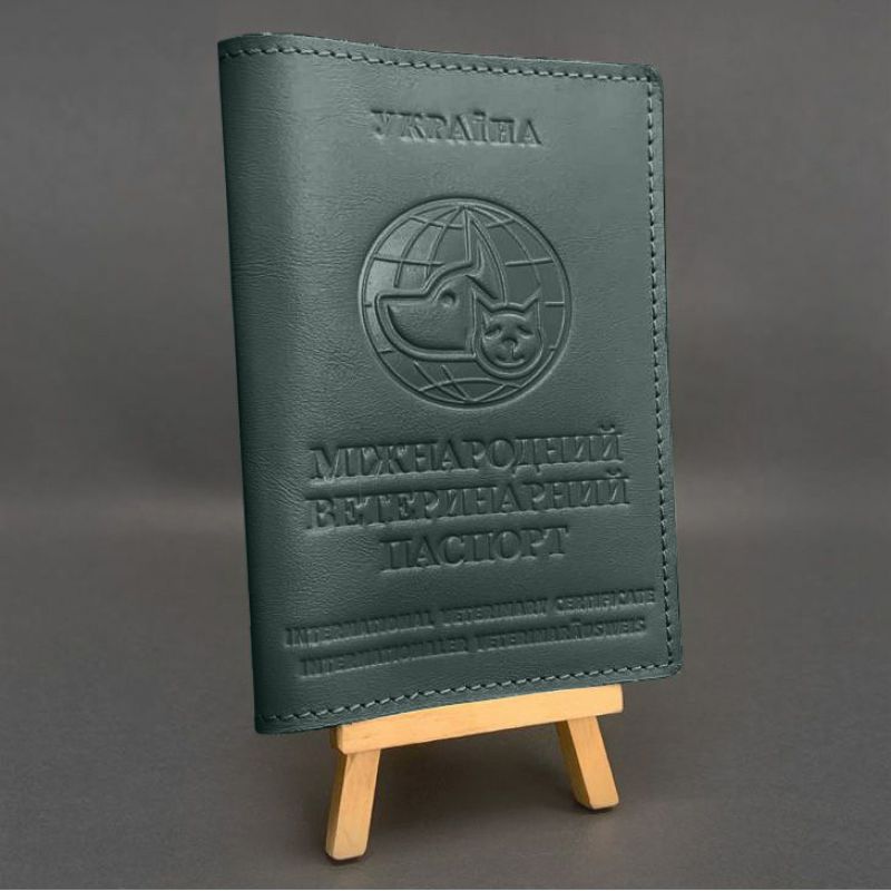 Кожаная обложка на ветеринарный паспорт Зеленая