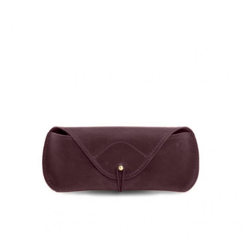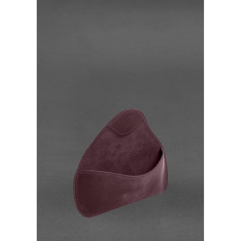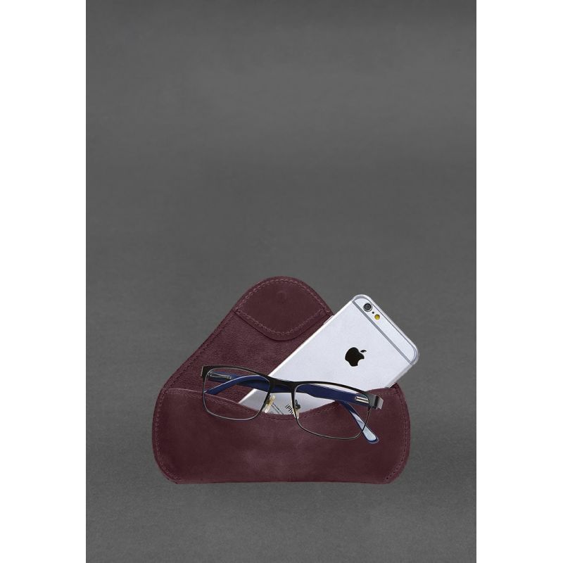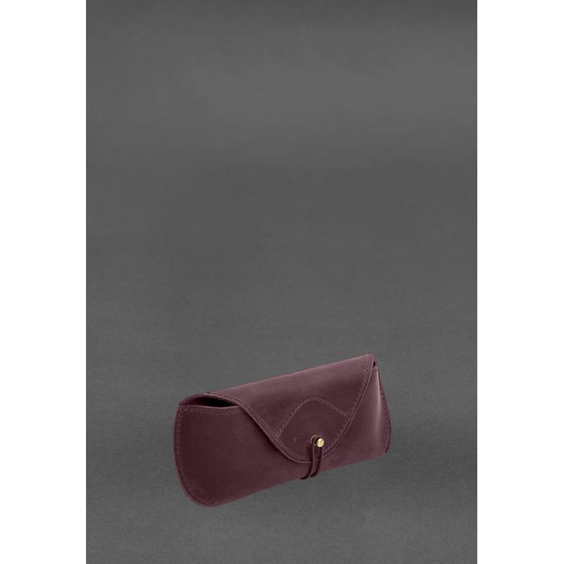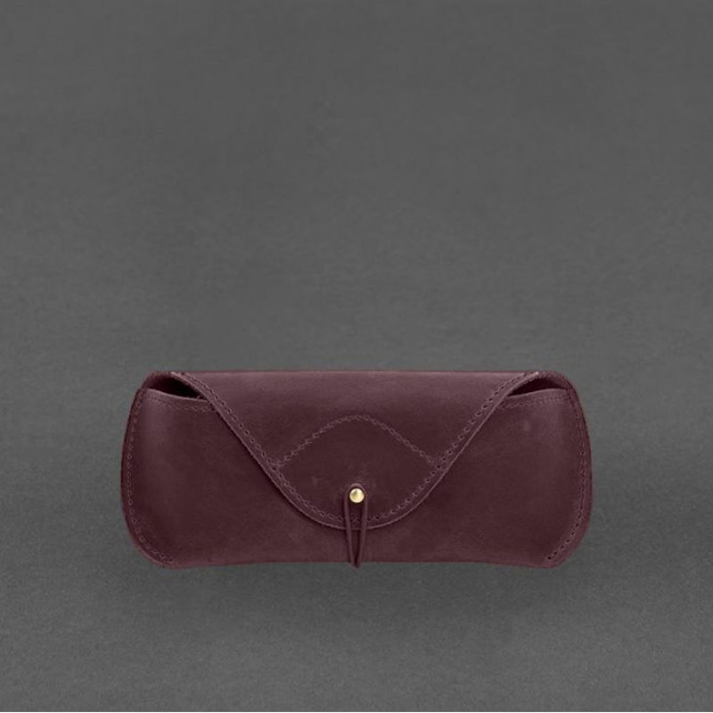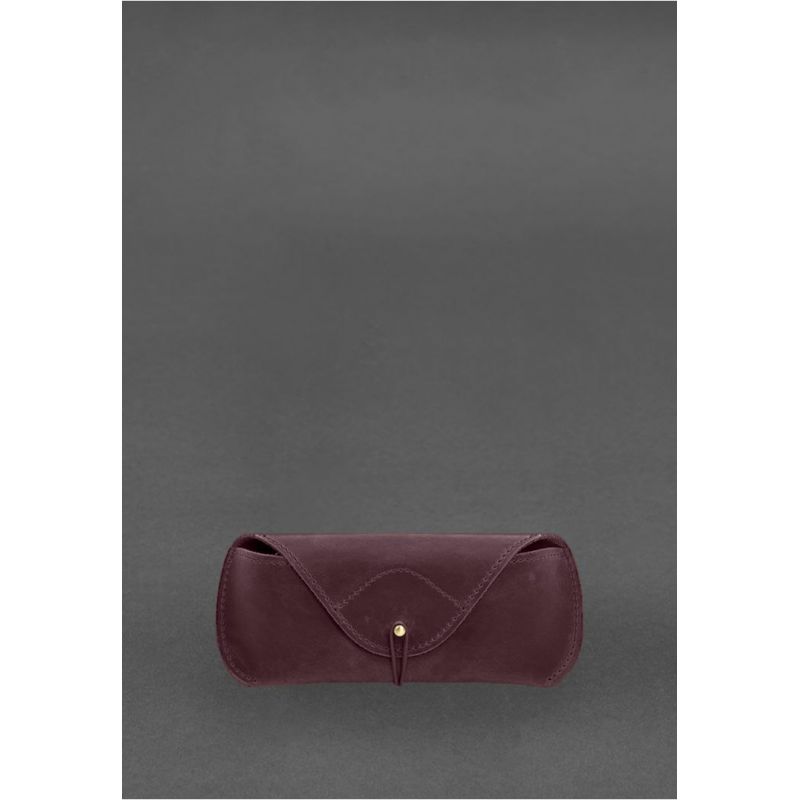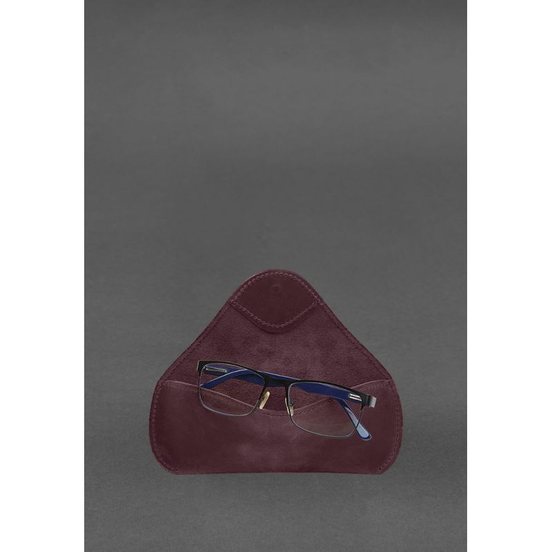 Кожаный чехол для очков с клапаном на резинке Бордовый Crazy Horse