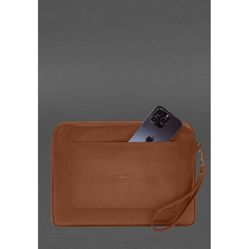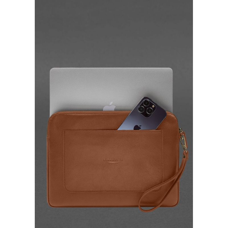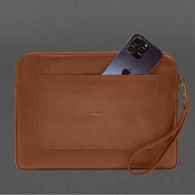 Кожаный чехол для ноутбука на молнии с карманом и петлей на руку Светло-коричневый